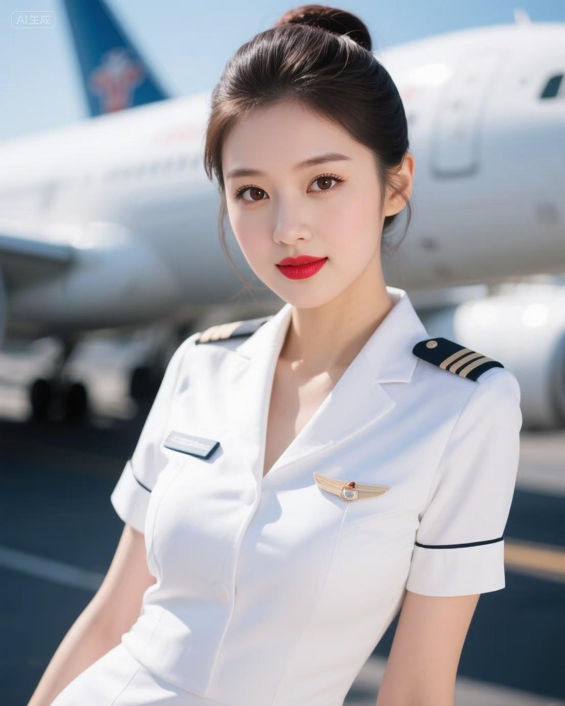 空姐的魅力,在蓝天白云下绽放!🌈✈️✨