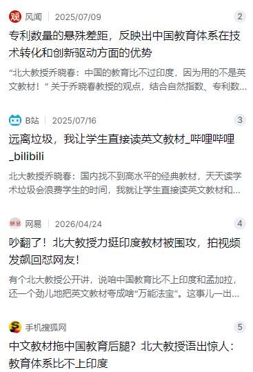 本来我们一直以为我们国内的教育,即使比不上美国,英国,日本等发达国家的水平,但是相比周边的第三世界国家绰绰有余,但是北京大学教授乔晓春给大家铺了一盆大大的冷水,他认为,你别说跟美国,欧洲等发达国家相比,就是跟印度,孟加拉相比,我们也是比不过人家的,因为这些国家说的是英语,用的是英文教材,他们走的路是正的,所以即使他们现在落后,但是他们迟早会超过我们的,因为他们走的是正的。 麻烦看官老爷们右上角点击一下“关注”,既方便您进行讨论和分享,又能给您带来不一样的参与感,感谢您的支持! 说句实在话,咱们国内大多数人一直以来都觉得,虽然咱们的教育水平跟美国、英国那些发达国家没法比,但在发展中国家里面,怎么着也算是佼佼者了吧?可北京大学的一位教授,却给大家当头泼了一盆冷水。他甚至认为,不要说什么欧美日韩,就是跟印度、孟加拉比,我们在很多教学方面也未必占得上风。 这位北大教授名叫乔晓春,是国内人口学方面的权威专家。他这话一出,立马在网上引发了轩然大波。2025年初,乔晓春在一场公开活动中发表观点,认为印度和孟加拉虽然国家整体发展水平落后,但他们的教学走的路是“正”的,因为他们全程使用英语教学,教材也直接对接国际前沿。在他看来,学术体系的语言工具决定了教育质量的上限,而我们在这方面恰恰存在短板,如果不及时调整,未来很可能被这些国家反超。 平心而论,乔晓春教授这番话听着确实刺耳。他的担忧也有一定道理。中国教育确实存在“重知识、轻个性”的毛病,应试教育下学生们的批判性思维和创新意识相对薄弱,老师们容易照本宣科,学生们被困在题海战术里,这确实是长期存在的隐忧。 但如果我们真的去了解印度和孟加拉的现状,就会发现乔教授的论据有点站不住脚了。印度的教育体系远非他所说的那么“正确”和“先进”。根据印度统计和计划执行部2025年的数据,印度总入学人数出现明显下滑,仅2024至2025学年就减少了近50万人。印度教育领域真正令人触目惊心的是学习质量危机,全国约有56%的10岁儿童无法阅读简单的文本,连基本的算术能力都成问题。公立学校基础设施破败,农村大量儿童因为贫困和家庭负担早早辍学,陷入了无法通过教育改变命运的恶性循环。 更何况,现实数据与乔晓春的观点完全相反。从2026年QS世界大学排名看,北京大学稳居全球第14名,清华大学升至第17名,而乔教授眼中“学术路径正确”的印度理工德里分校仅排在第123名,孟加拉最好的达卡大学更是排到了584名。2024年自然指数显示,中国科学院稳居全球第一,中国高校在前十名中占九席,而印度仅排第九,贡献度不足中国的五分之一。2022年中国专利申请量占全球46.8%,是印度的21倍。事实证明,中国教育的整体水平远非乔教授说的那样不堪。 更别提高达3537万孟加拉儿童因极端天气失学的数字了。联合国报告也显示,光是热浪和气旋就让当地儿童平均缺课长达8周。连基本的温饱和稳定入学都保证不了,仅靠英文教材就把人家的教育夸上天,实在是本末倒置。 我们确实没必要固执保守,客观存在的教育问题该改就得改,比如打破唯分数论,鼓励独立思考和创新能力,甚至适当加强专业领域的英语教学以便对接国际前沿,这都没问题。 但咱们也不能妄自菲薄,更不能用一种标准去衡量所有。中国的教育体系培养出了一批又一批踏实肯干、有扎实专业功底的人才,撑起了全球第二大经济体的运转。中文承载着五千年文明的传承,学英语是为了看懂世界,用中文才能走好自己的路。多看看印度孟加拉教育的真实困境,我们才会更珍惜脚下这条经过时间检验、培养了大批人才的中国教育之路。