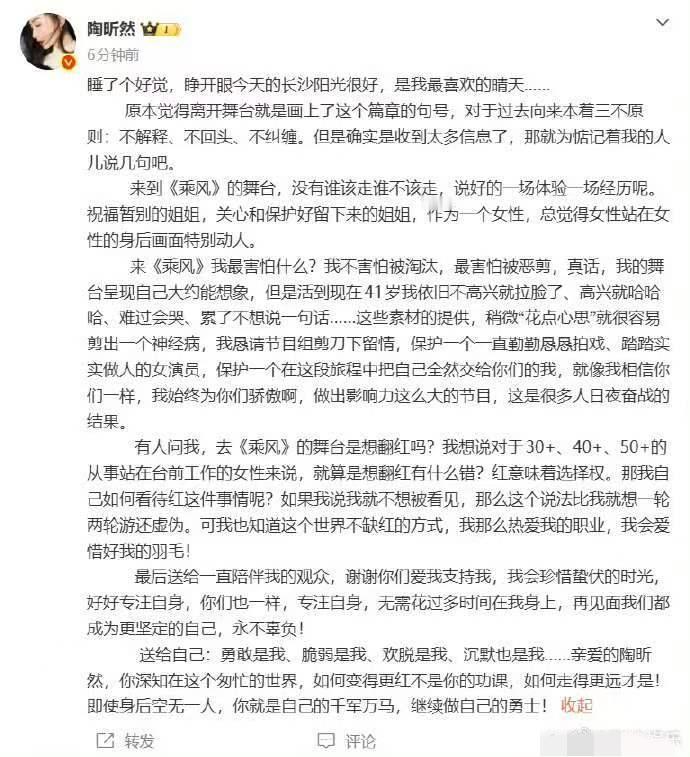 《浪姐7》第二次公演被淘汰的陶昕然发文,自己不害怕被淘汰,害怕被节目组恶意剪辑,恳请《浪姐》后期剪辑手下留情。看来不少姐姐对节目组恶意剪辑心有余悸,赵子琪淘汰后被推上风口浪尖,也是因为后期剪辑的问题。 陶昕然回应上节目想翻红并没有什么错,红了才有选择权。但其实陶昕然还没意识到,她就和安陵容一样,没背景没地位,即使进了宫使尽浑身解数也难以立足。赢了团战反而被淘汰,陶昕然是被做局的那个人。