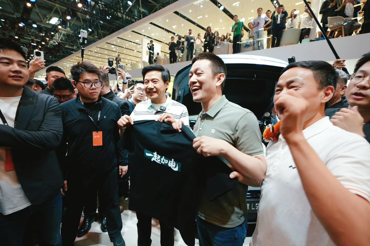 这就是中国汽车,为什么中国新能源车能如此强大——同脉连枝,合作共赢! 北京车展现场,雷军把T恤送给理想、小鹏、蔚来、比亚迪同行,几个画面放在一起堪称中国车企互相鼓劲的名场面。 国内新能源发展到现在很不容易,车企老板之间也可以良性互动,比如雷总和李想这波车展互相站台,真的挺好~ 行业竞争当然激烈,但站到更大的视角看,大家共同面对的是全球市场,是“中国质造如何赢得世界信任”这一重大话题。 在一起,就是中国汽车! 彼此照亮,一起向前,就是中国汽车最动人的叙事!