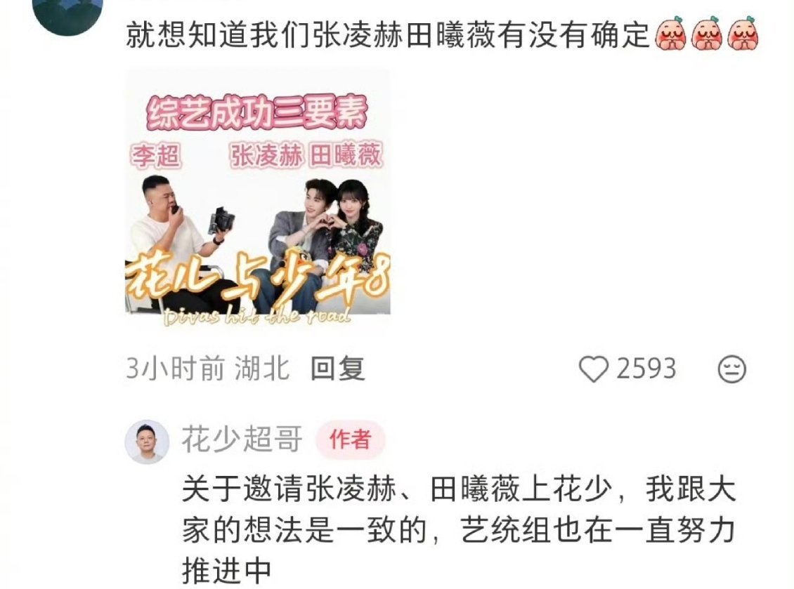 花少导演表示艺筹组正在努力约张凌赫、田曦薇上花少花少导演在约张凌赫田曦薇