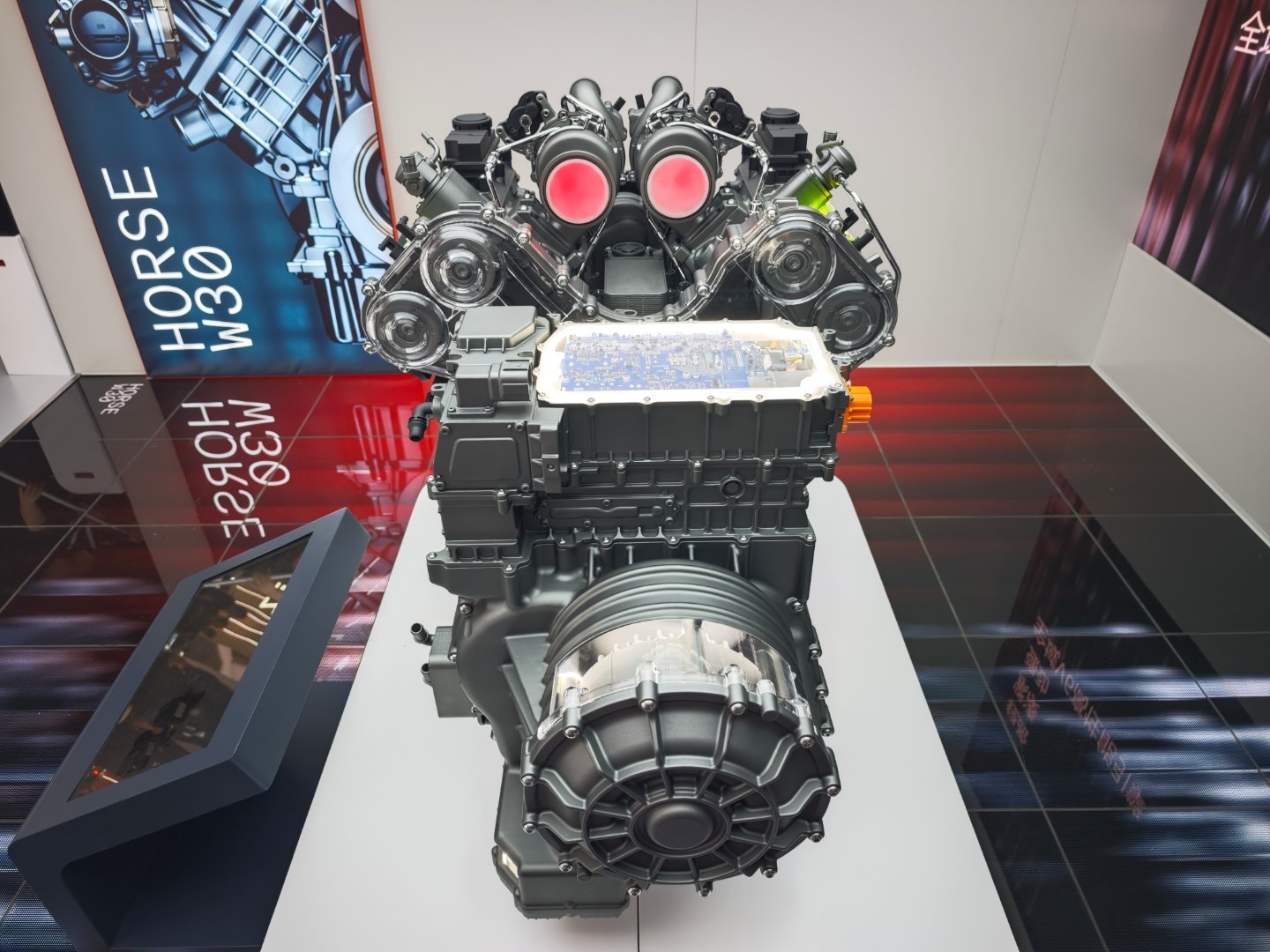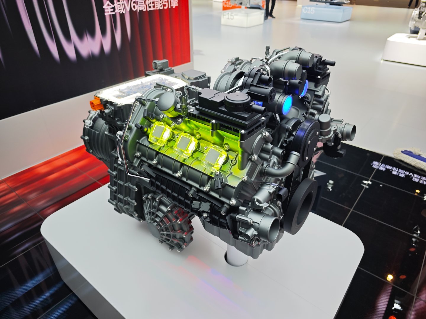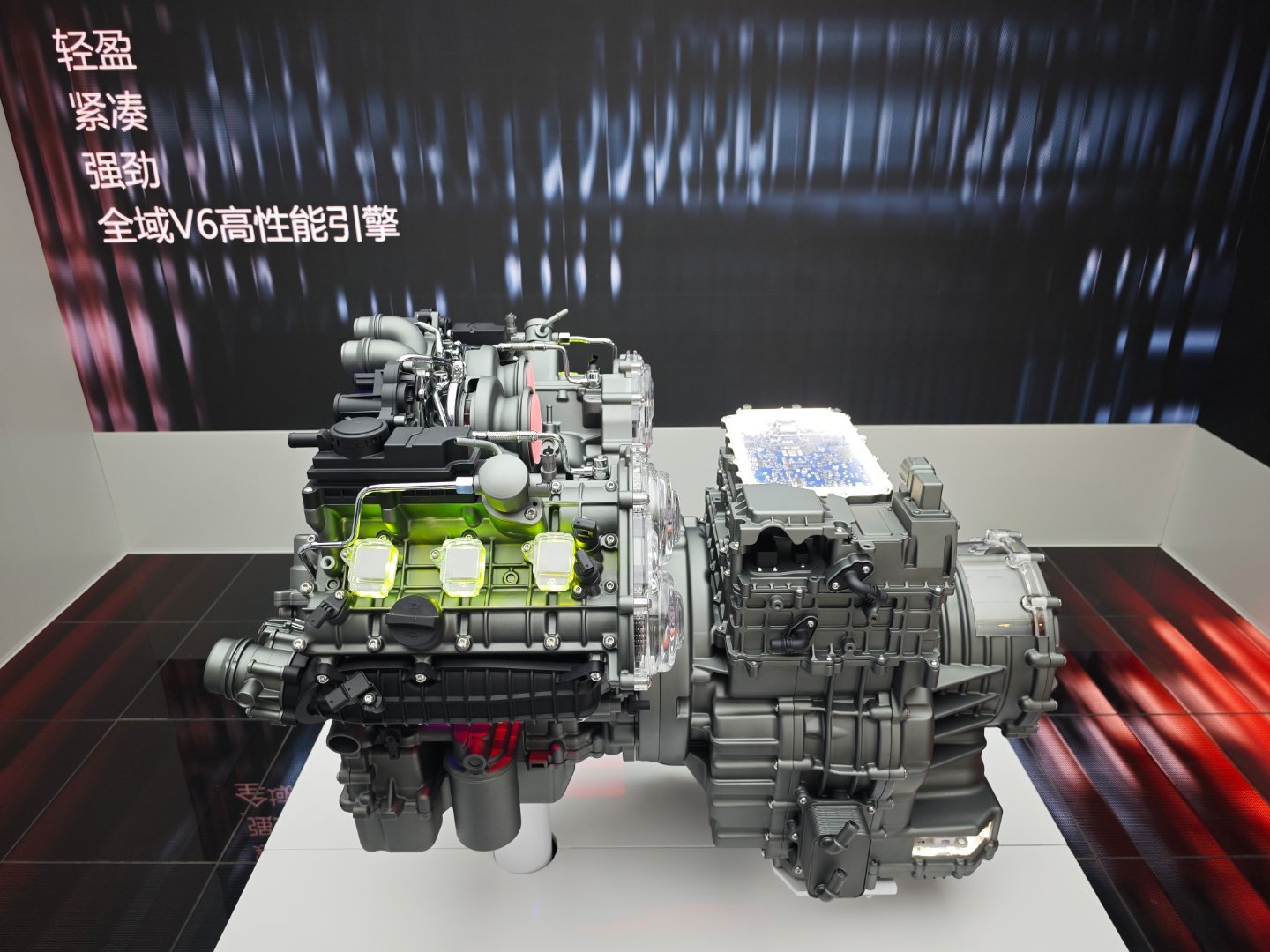 浩思V6 3.0T发动机,V型发动机,90°气缸夹角,涡轮增压,缸内直喷,最大功率350-400千瓦,峰值扭矩600-700牛·米,重量160公斤,可适配HEV/PHEV/REEV