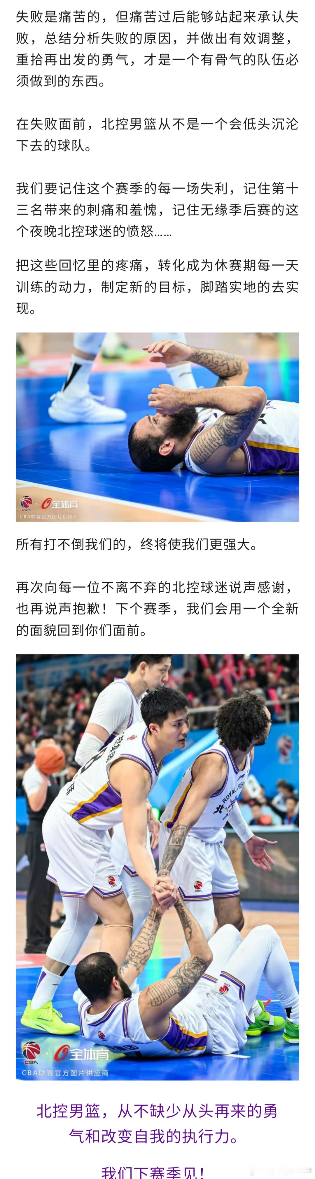 北控男篮发文《承认失败,从头再来》:作为一支职业队伍,不能管理好情绪带来的影响,也多次导致球队在关键时刻求胜欲望不足,出现不该有的错误,而正是这些错误最终把我们挡在了季后赛的大门外。