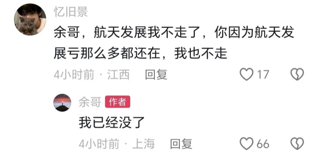 余哥留言:我已经没了!