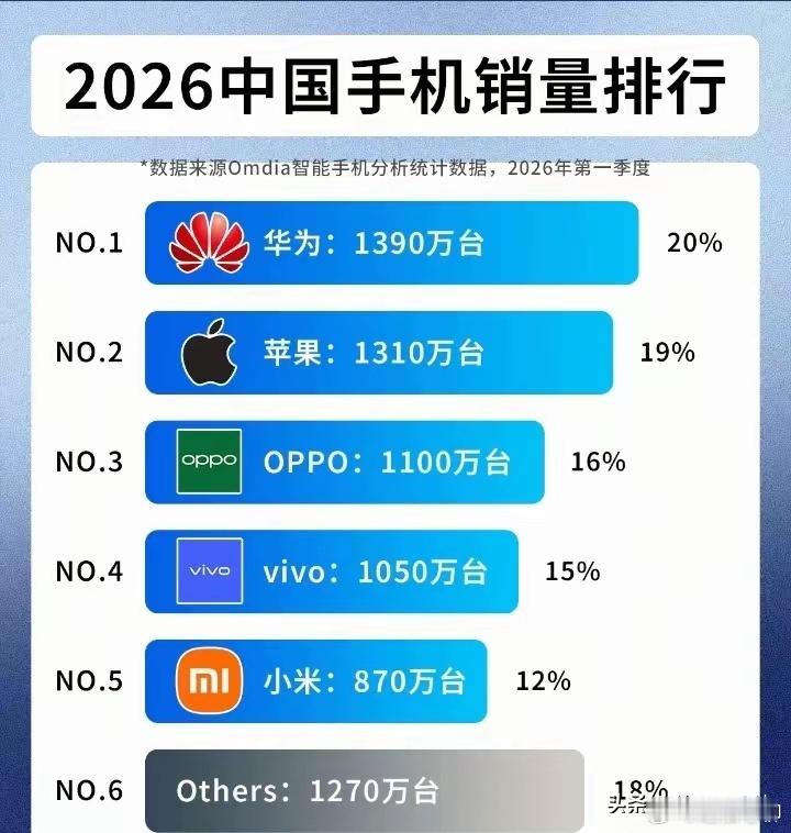 2026一季度手机销量排行榜!华为超越苹果登顶,给老美好好上了一课制裁了寂寞