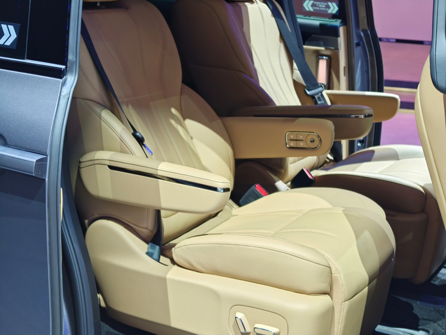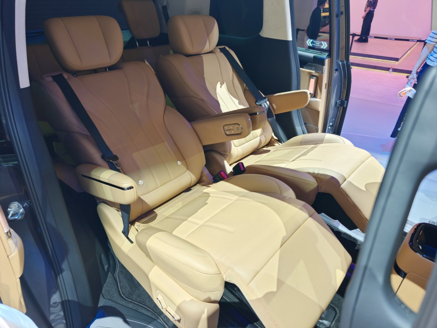 2026北京车展 全新一代传祺向往E8,如果顶配卖23万左右,非常好,让人心动。第三排折叠收纳,第二排双零重力座椅,第二排可以左右滑动,整体质感在线。车门拉手是台灯设计,非常好看。1.5T+2DHT系统,38.9度电,几乎完美。实在要挑问题就是内饰质感还是弱了一点,颜色搭配没那么好看,但是不影响大局。