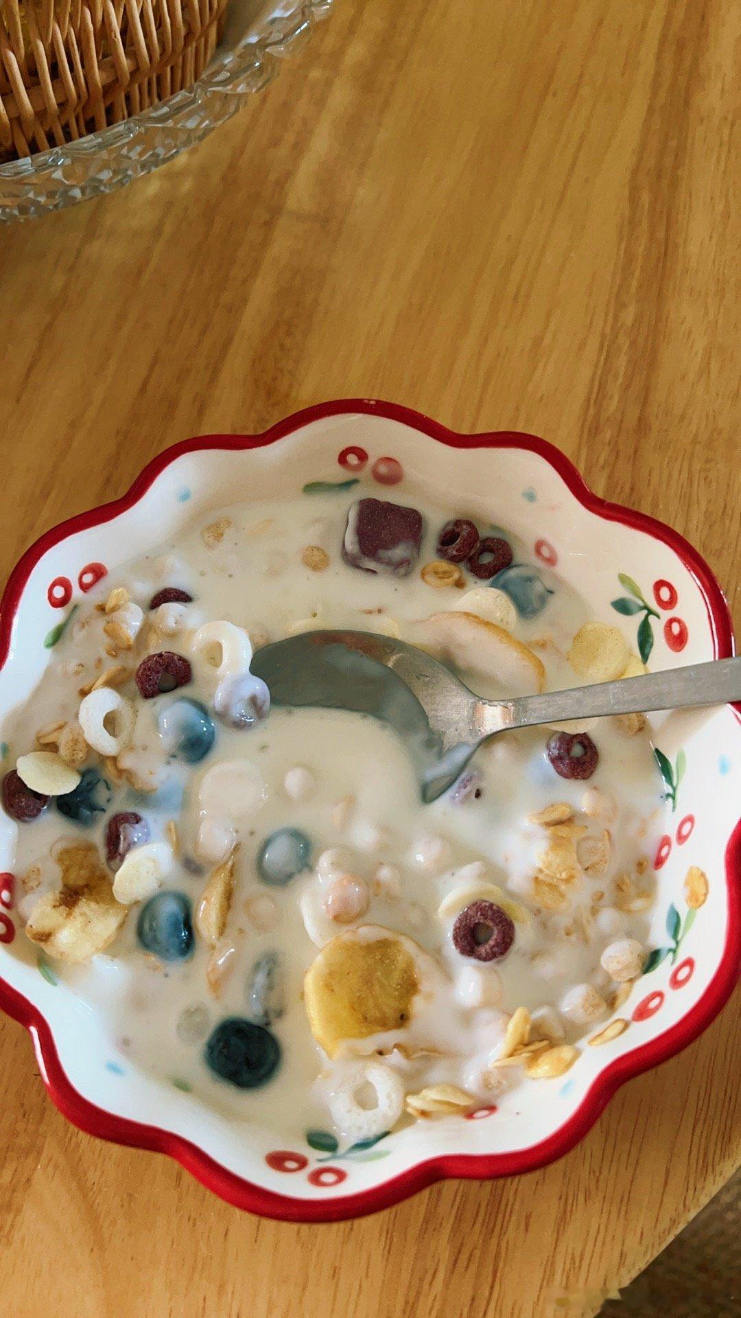 昨晚体重首次跌到60以下真是不容易呀早午餐继续吃饺子昨天没过瘾煮了剩下的10个又煮了两个汤圆还有一个荷包蛋囤的满满的一抽屉咖啡终于消耗差不多了买了件三福的防晒衣年纪大真是不能穿这种颜色要多丑有多丑发现没有运费险为了不损失几块钱还是留下了反正我遛狗穿也没人看下午早早饿了做了个酸奶碗晚上给某人点了个蜜汁炸鸡想想周末的我也陪他喝了一罐啤酒跟我说在灵宝工作的事儿住的民宿是黑白电视把我笑疯了