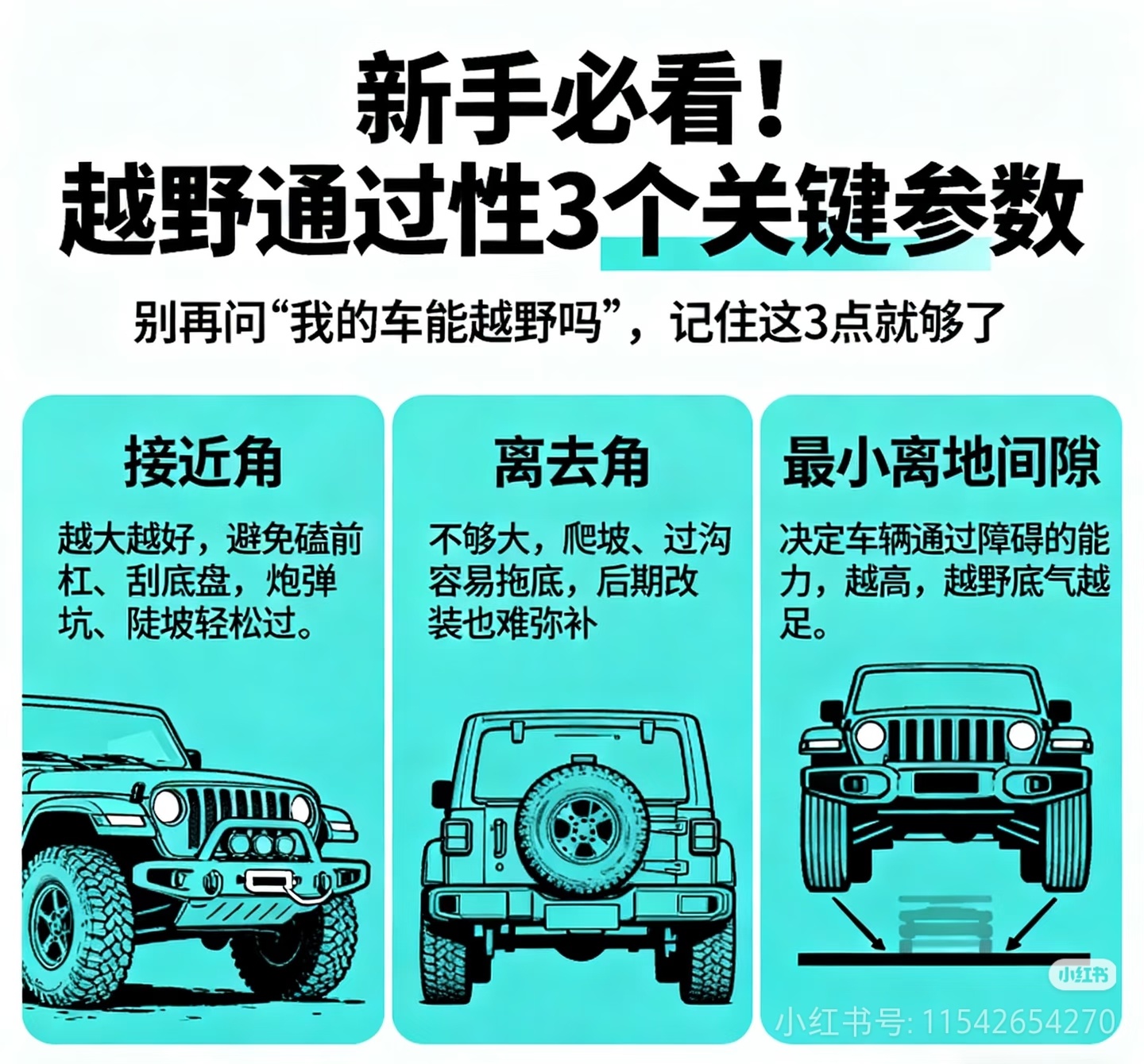 新手玩越野,别被一堆参数整懵。判断车能不能豁,其实就看三点。首先是接近角,数值越大越香,过陡坡、炮弹坑,压根不怕刮前杠。这数不达标,很多路压根进不去。北京车展重新定义全民越野年轻人的第一台越野车来了