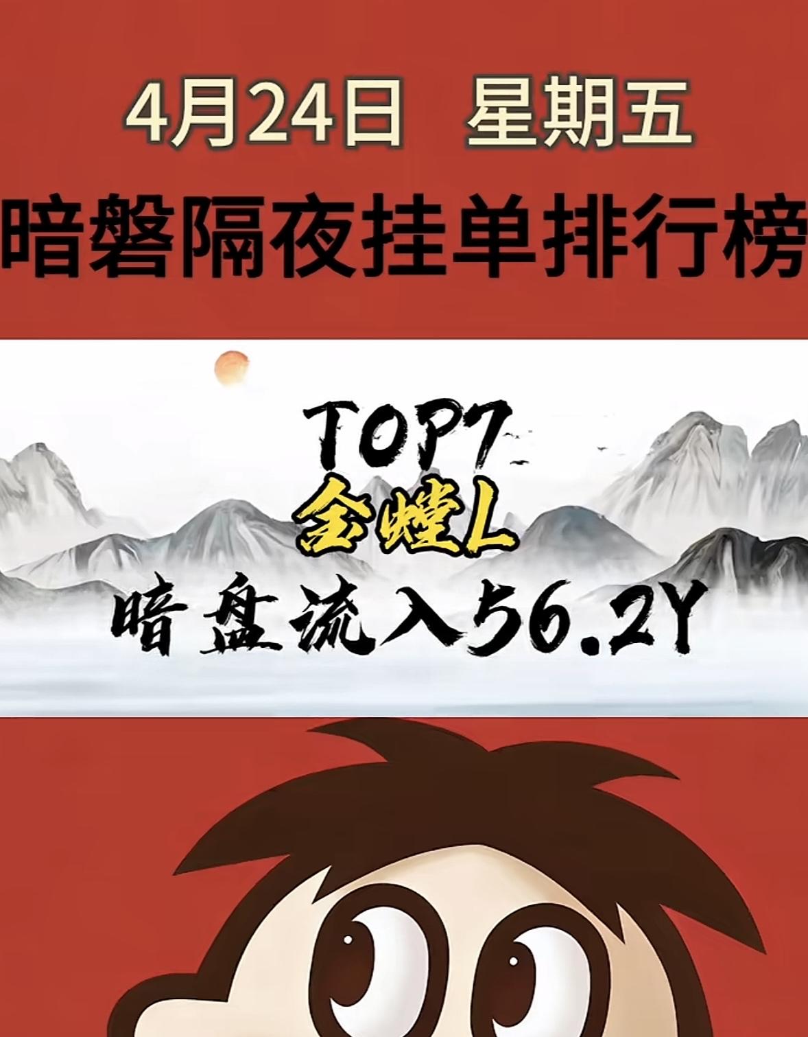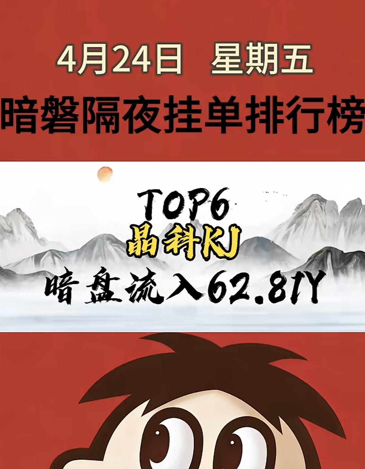 4月27日周一暗盘隔夜挂单排行榜揭晓 4月27日日暗盘隔夜挂单榜里,晶科科技一马当先领跑。此前4月23日晚就有消息,晶科科技隔夜挂单位居A股人气榜第1名。这足以看出它在投资者心中的热度。 同期财经消息也不少,4月27日灵初发布具身智能大模型,影响AI大模型板块;4月28日长征十号乙文昌首飞,利好商业航天板块;28 - 30日还有中部国际人工智能产业博览会,人工智能板块也值得关注。晶科科技此次领跑暗盘隔夜挂单,后续走势如何,很让人期待!