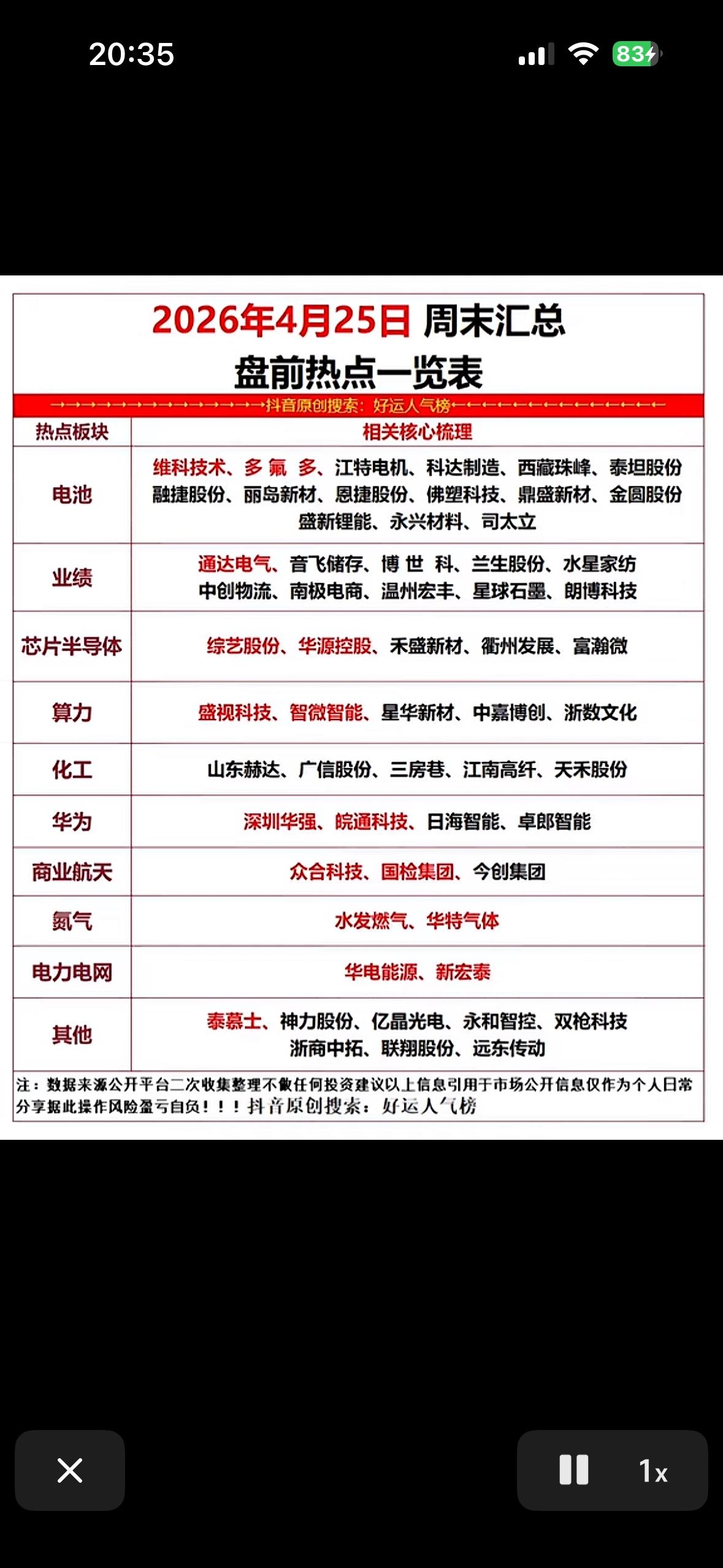 2026年4月25日周末热点一览表,带你领略科技与商业的魅力!🚀💼 2026年4月25日这个周末,科技与商业领域那叫一个精彩纷呈!在科技界,某科技巨头发布了新一代人工智能芯片,运算速度比上一代提升了50%,能广泛应用于自动驾驶、医疗影像分析等领域,简直要让相关行业“改头换面”。 商业方面,一家新兴电商平台推出了创新的购物模式,用户可以通过虚拟现实技术沉浸式购物,销售额在周末两天就突破了5000万元。还有几家新能源车企公布了新的研发计划,目标是让电动汽车续航里程再上一个台阶。这科技与商业的魅力,就像熊熊烈火,越烧越旺,让人目不暇接!