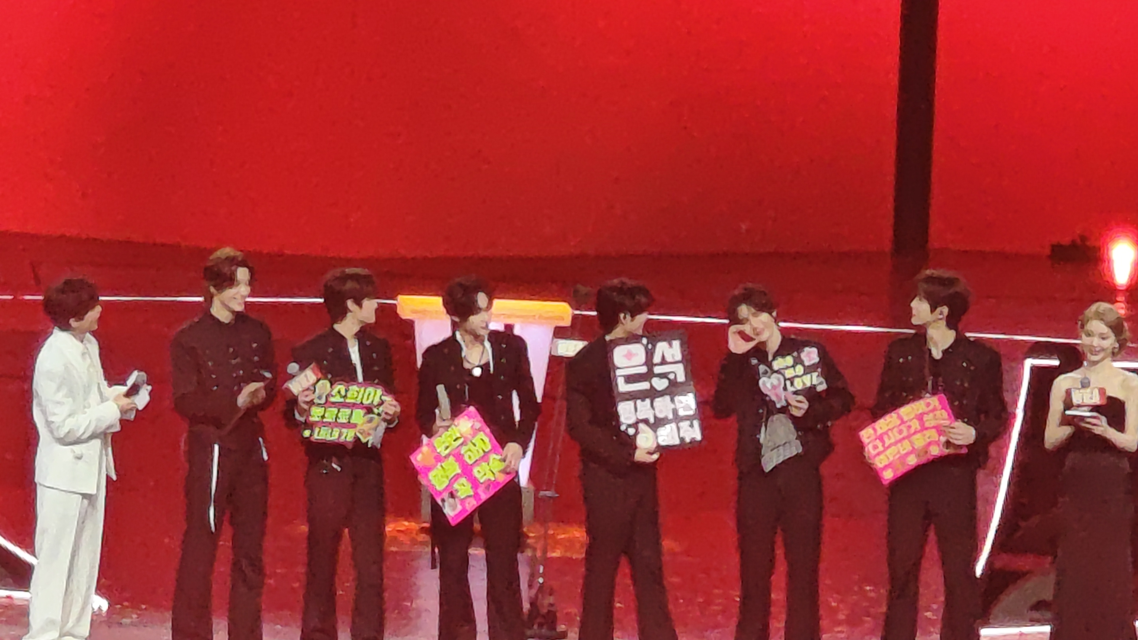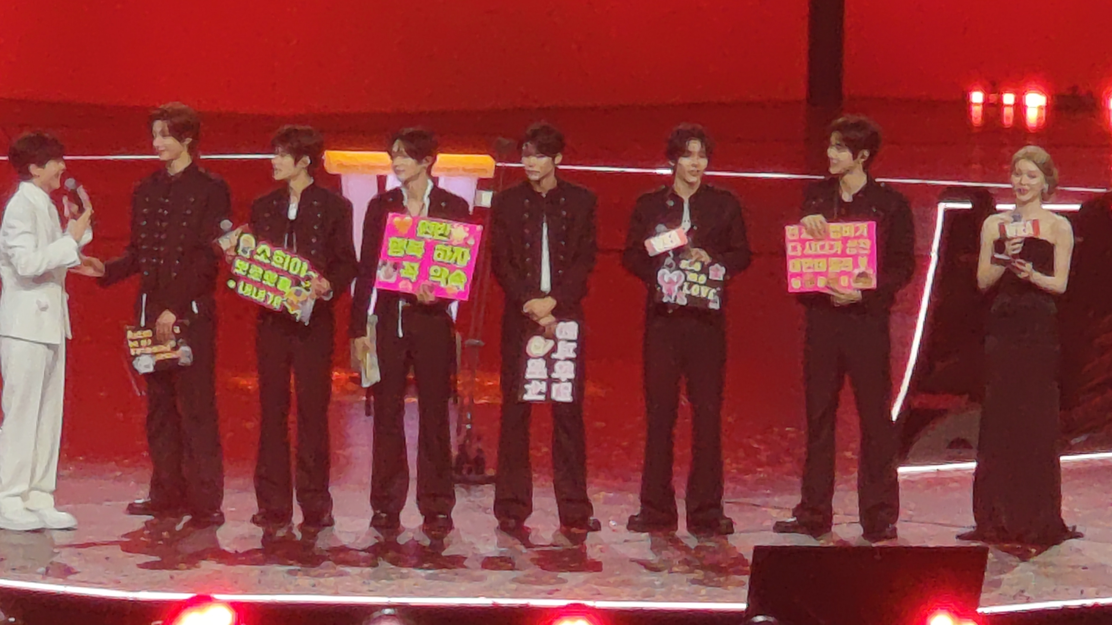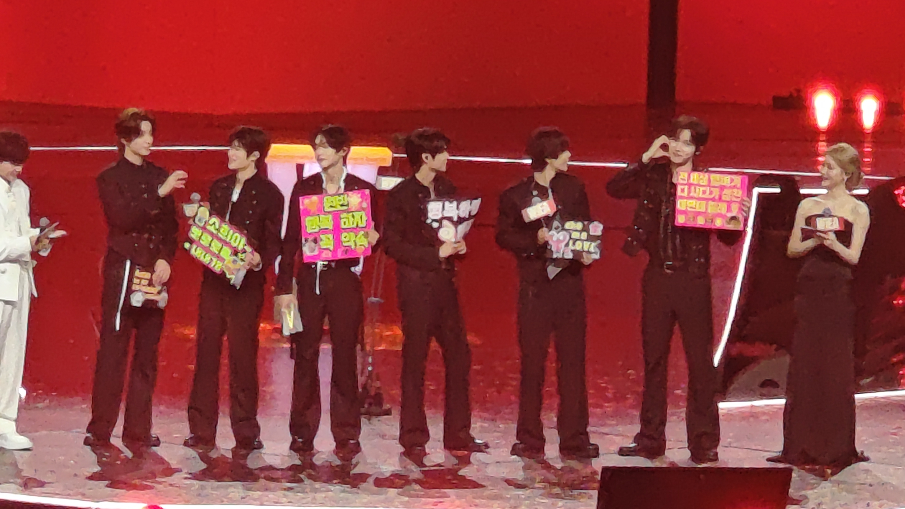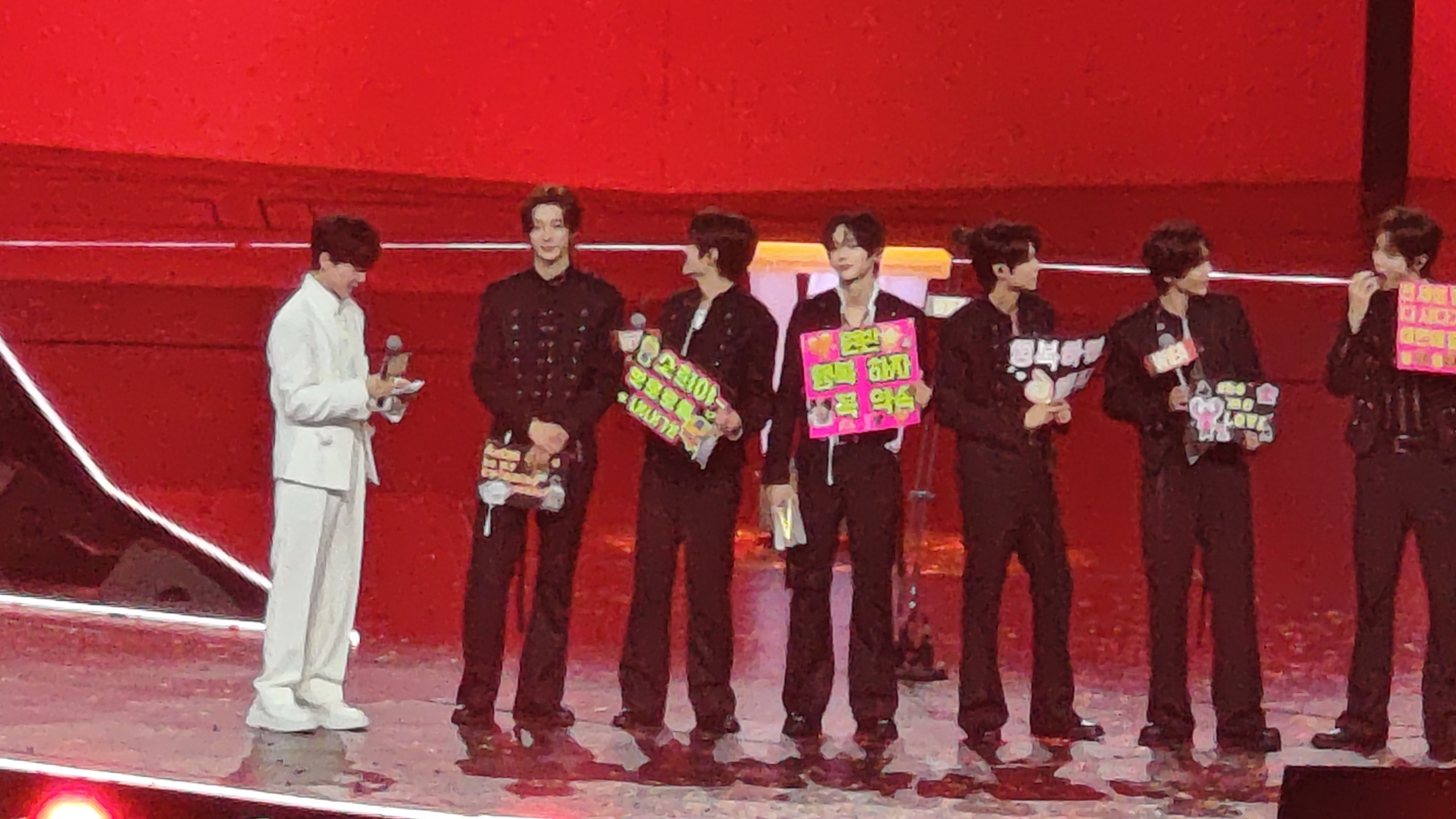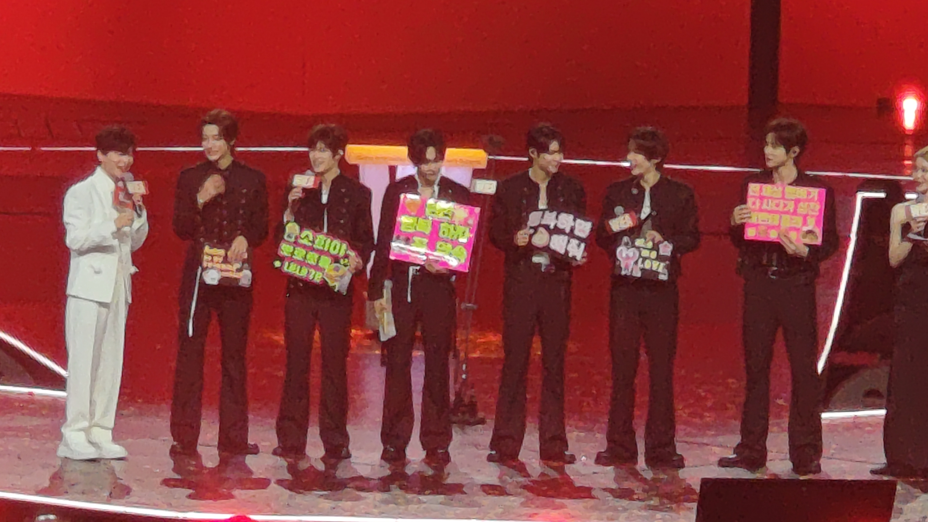 LNGSHOT的弟弟们端着蛋糕悄悄上台,给朴宰范带来了生日惊喜。能感受到朴老板很