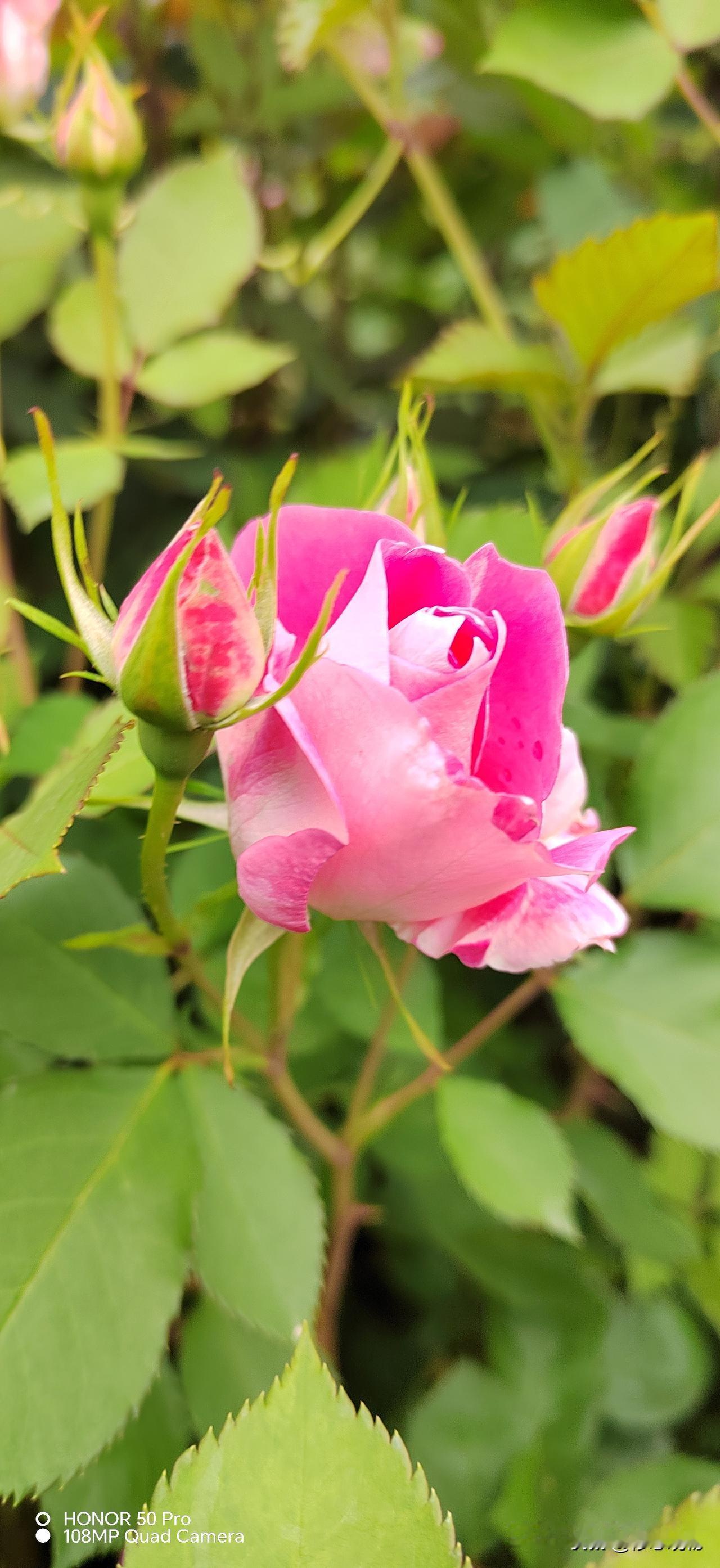 浅粉匀开四月光, 柔瓣舒卷趁熏香。 含苞红韵藏深愿, 岁岁平安花自芳。 一抹浅粉,晕染了四月春光。温柔熏风轻拂着盛开的月季,柔润的花瓣舒展而优雅,边缘泛着细碎柔光,身旁花苞紧裹红韵,像攥紧的希望。绿叶为衬,花香轻扬,不张扬却动人。愿这春日花事,予你安稳力量,岁岁无恙,花开如常。