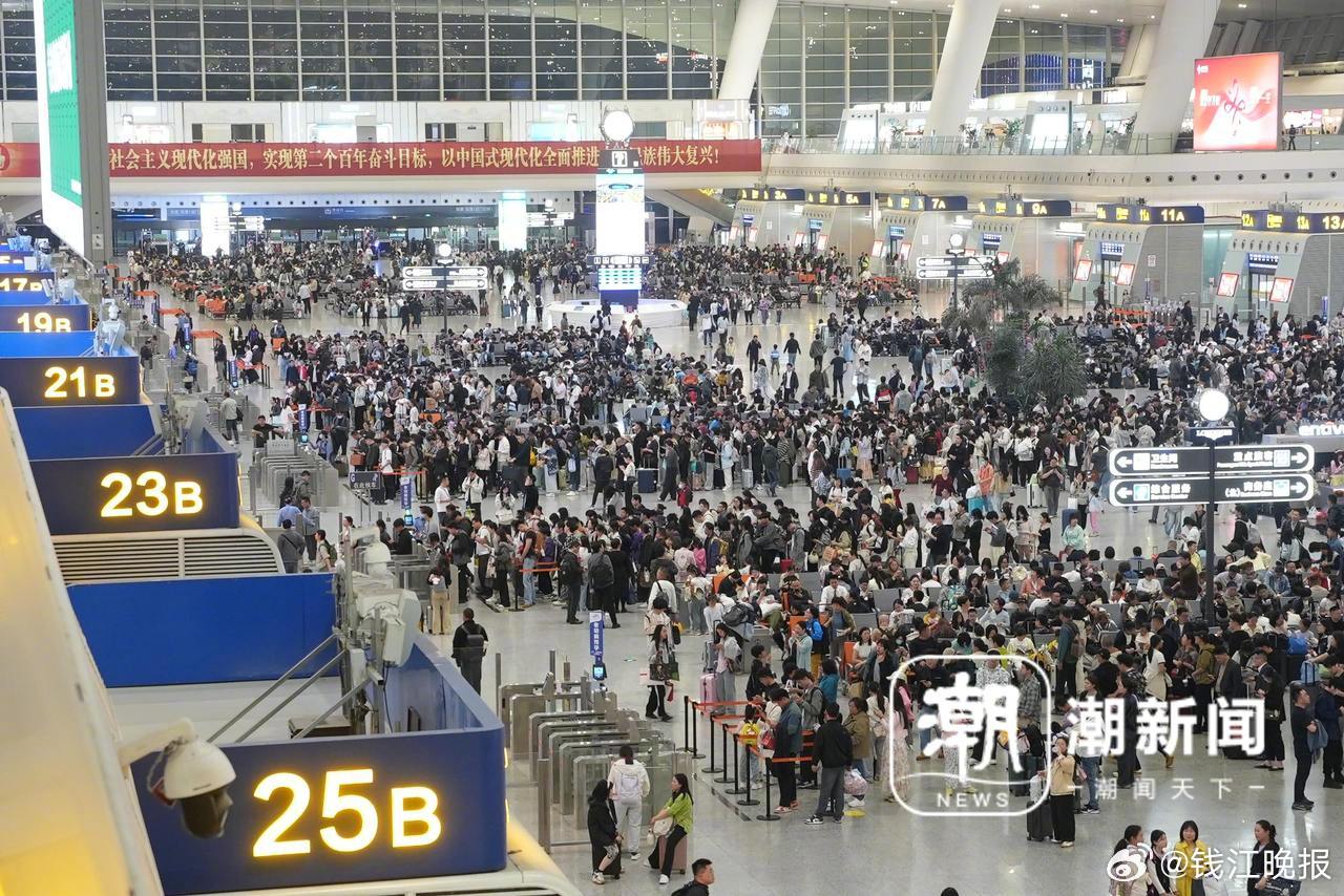 记者从铁路杭州站了解到,铁路杭州站今年年春假、“五一”假期旅客运输期限自4月25日起至5月6日止,合计12天。期间,铁路杭州站预计发送旅客500万人次,日均41.7万人次,较2025年同期增长6.8%;其中,春假最高峰日在4月26日,当天预计发送旅客43万人次。铁路部门相关负责人介绍,今年春假、“五一”假期运输,杭州部分地区中小学校春假启动加上调休安排形成了最长十天的超长假期,掀起了家庭游、亲子游等出行热潮。(潮新闻 记者 陈薇/文 杨晓轩/摄)#官方通报女子劝阻男子吸烟引争执#
