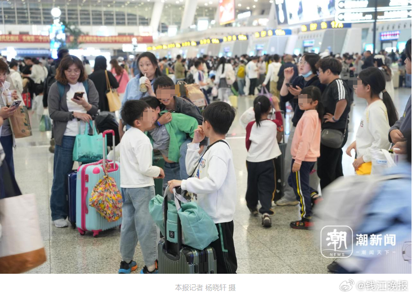 #春假大军即将席卷全国#【杭州春假第一波已出动!今晚杭州东站人山人海,已被小朋友占领】#春假出游大军占领了杭州东站# 4月25日晚,杭州火车东站,大人孩子一波接一波,杭州春假出游大军来啦!读者纷纷报料:“傍晚的火车站人山人海”“全是娃”“杭州东站进站排队排到门口”……杭州市民柳先生就是其中之一,趁着孩子放春假,一家三口连夜出发。“我们打算去广州玩几天,早点去,想着在5月1日前赶回来,避开人流最高峰。”柳先生告诉记者,为了节省在路上的时间,一家三口第一次买了高铁动卧,4月25日晚上9点04分从杭州东站出发的D935次,睡一晚第二天一早就能到广州。晚上8点多,柳先生在杭州东站给记者发来消息,“今天火车站小朋友是主力军,很多都是家长带着孩子出门,有的北上有的南下,大家都是连夜出门。”梅女士一行,则是和朋友一家结伴出游,等车的时间里,三年级的孩子在杭州东站候车室抓紧时间写作业。“此刻的火车站灯火通明,太热闹了。”