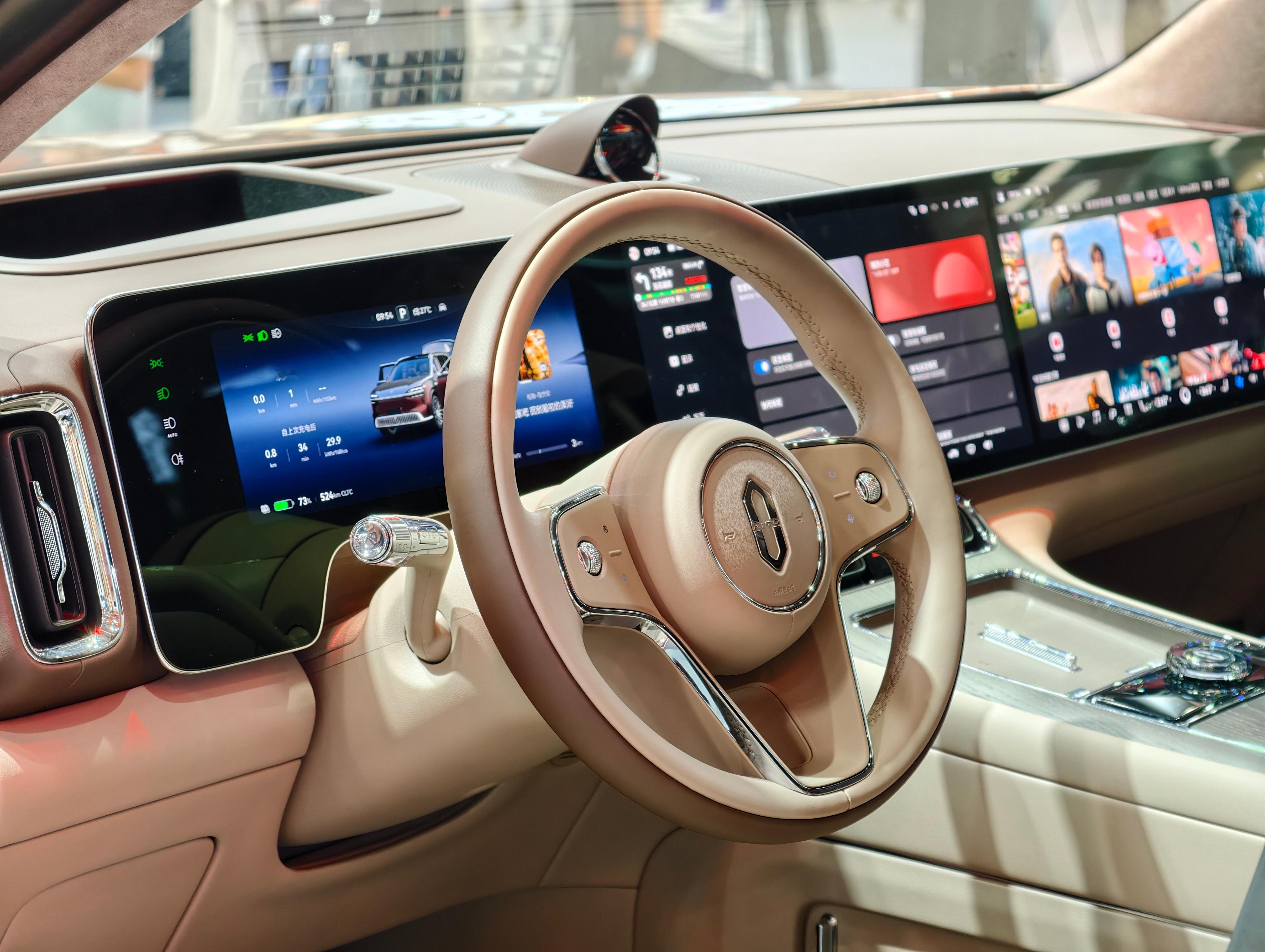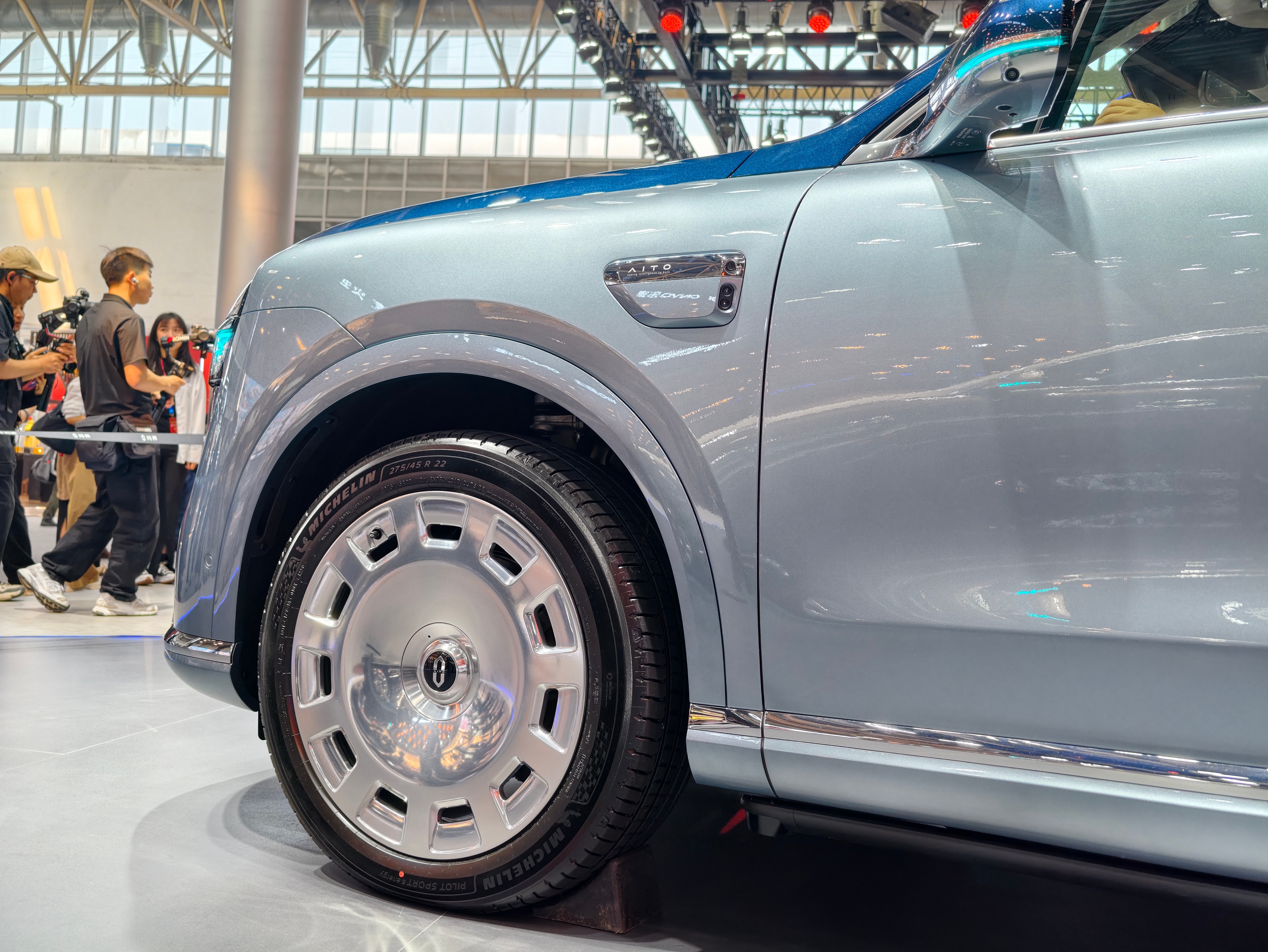 方法也很简单,大量用镀铬+增配+抠细节,比如大饼轮毂,新一代双百万像素彩色投影大灯、增程纯电底部全部换上更精致的镀铬格栅,侧面的固态激光雷达等等都上了镀铬,对于质感的提升立竿见影。