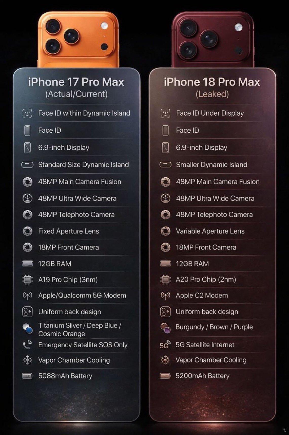iPhone18ProMax厚度近14mm 这是摄像头凸起的总厚度,不是机身本身,厚13.77mm、重243g。之所以这样厚,核心原因是为了给全新的可变光圈技术留出空间,也算是为了影像而牺牲了外观。