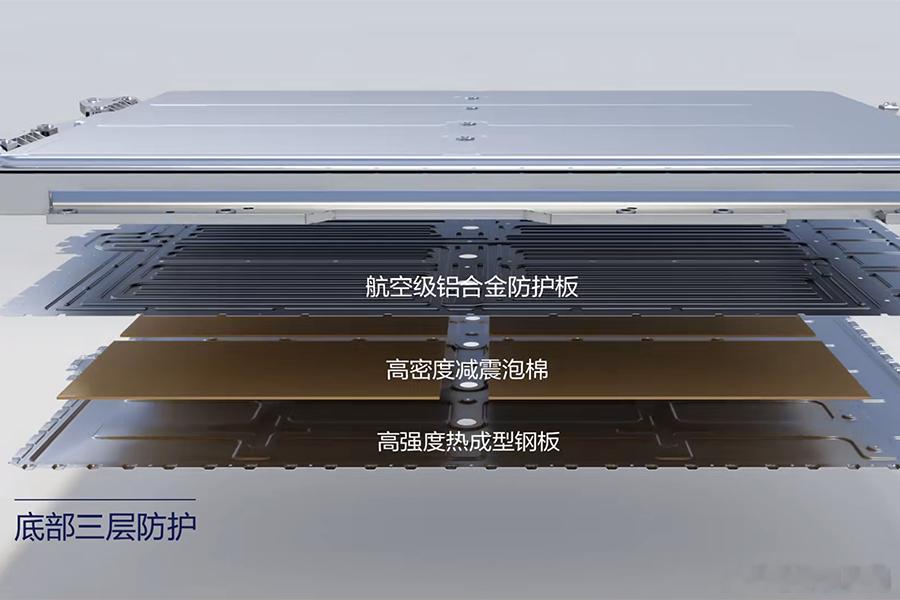 另外,巨鲸电池的安全标准也更高,比如说电池包内置了近200个智能感知节点,前副车架最低点低于电池包、侧边梁相较行业增加了60%-75%、底部五层防护结构、400+密封点等等。而且它并不是一个孤立的技术,它可以与乾崑智驾、鸿蒙座舱、途灵平台、智擎都有协同合作。
