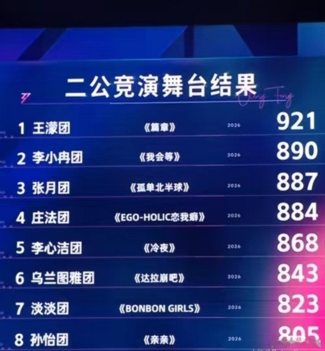 浪姐二公竞演舞台结果 下半场1v1是王濛团vs张月团下半场的表演普遍高分一点。