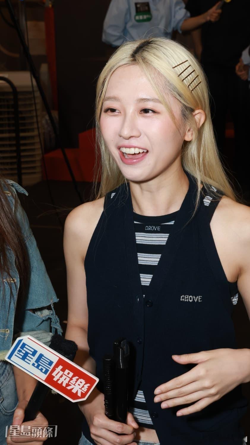 另外,早前陳奐仁爆料《魔音女團》有女團員撥頭髮爭出位,仲出現兩位嫌疑人物陳熙蕊同俞可程。身為魔音女團一份子嘅倪嘉雯就話,自己嗰組冇撥頭髮事件,覺得如果solo撥頭髮或單眼都冇所謂,暫時唔知嫌疑人是誰:「我嗰組好和平,但唔可以劇透組員名單。」提到嫌疑人之一陳熙蕊,倪嘉雯話同佢第一次合作,覺得16個女仔冇大家想像中咁多是非,好和諧,每日排舞、唱歌同瞓覺,冇時間搞呢啲嘢,大家一致想跳好舞步,未感覺到。問到擔唔擔心有人爭C位,佢話:「佢哋爭得喇!有能力應該畀C位,我跳舞同唱歌比較差,喺後面已經好滿足,我對住鏡頭單眼好似痙攣。(你冇殺傷力冇咩人同你爭?)對呀!拍攝時幾開心,好似識咗一班好姊妹。」戴祖儀忍唔住幫口解畫,話可能有頭髮插到眼就可以加入動作。倪嘉雯仲大讚另一嫌疑人俞可程好努力,會督促大家跳舞,但冇留意佢有加動作,因為自己只關注自己。TVB