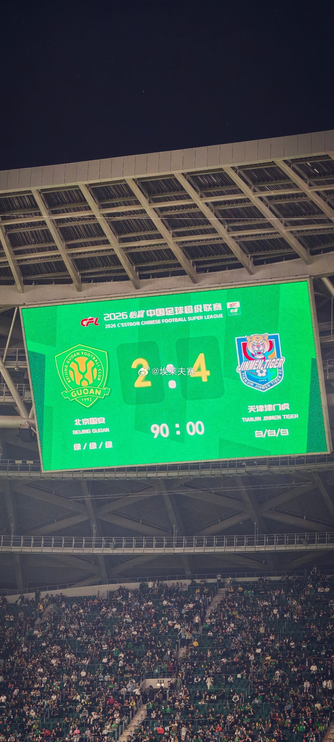 主场三场不胜+两连败可还行!北京国安2比4天津津门虎