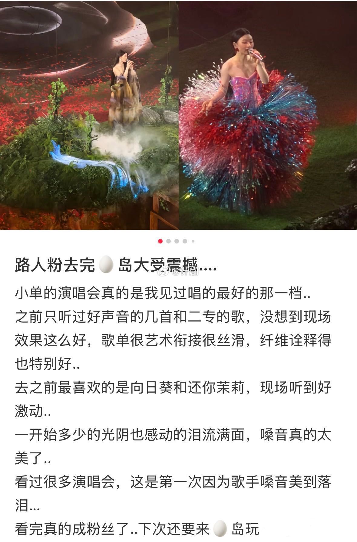 单依纯演唱路人口牌单依纯的现场口碑像开了倍速,听过的都说好。路人变粉丝只需要一