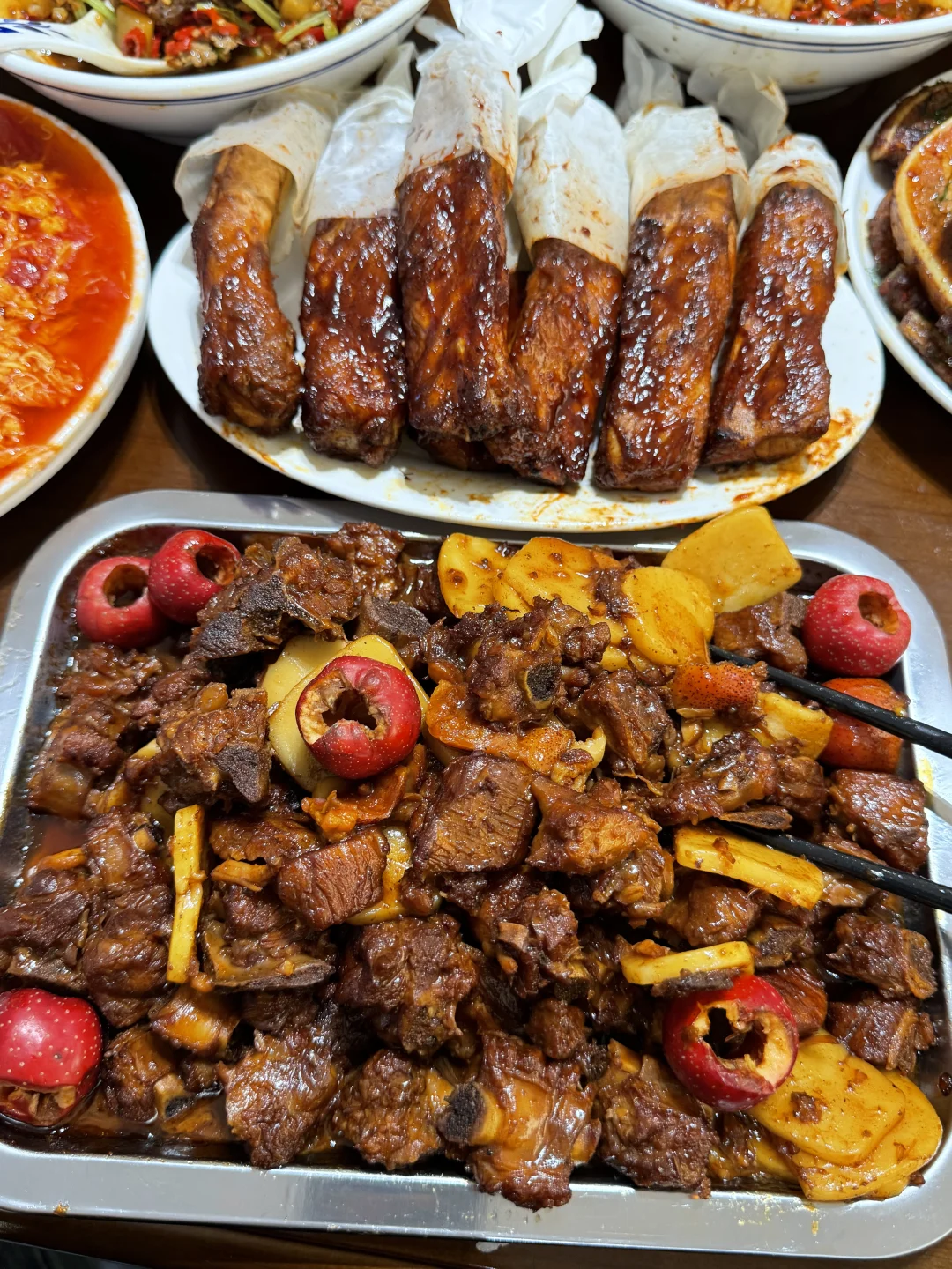 五刷了!!极品小破店!!每一道都夯!!求求你们去吃!!真的好吃亖了踏马的啊啊啊啊啊啊啊 新出的柠檬叶脆骨一口上头啊,柠檬叶的清香和脆骨也太配了!就是有点费牙,但是真的好好吃!! 还吃到了目前坠好吃的纸包排骨,每根都裹满酱汁,大口啃着吃满口的肉香真的太过瘾了! 可乐年糕排骨也墙裂推荐!!排骨炒鸡软烂入味,酱汁是可乐的甜混着山楂的酸,入口就惊艳到了!! 他家的拉丝番茄鸡蛋无敌下饭!!谁懂这个浓郁的番茄汁+拉丝鸡蛋的魅力,香哭了!! 家人们,来北郊一定别错过!!