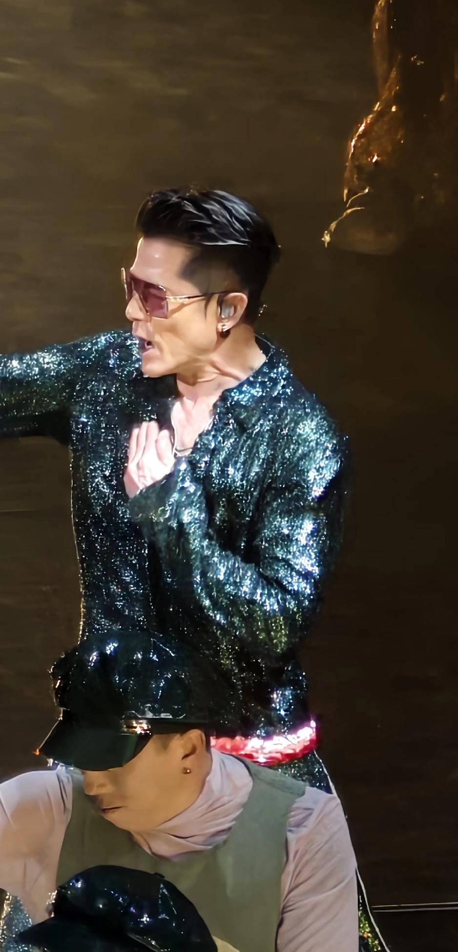 4月25日,郭富城的合肥演唱会怼脸拍曝光,颈纹深眼袋重,是有点上年纪了,但也不像61岁的,远看还和20岁的小伙子一样生龙活虎。 郭富城是安徽芜湖南陵县的女婿,这次来到合肥演唱会,也算是回到家乡了。 他的造型比之前更加时尚了,有一个造型是穿着一身亮片的衣服在舞台上唱跳,怼脸拍他眼袋是有点重,颈纹也比较深,看着是老了,但身材不像61岁的。 他的动作依然犀利,远看衣服很时尚,就像是20多岁一样,根本看不出来是老人。 这就说明郭富城年龄是大了,但体态和心态都没那么老,还能唱能跳,也与他对舞台热爱有关系吧。 如果开了美颜,他的怼脸拍就跟20岁一样。