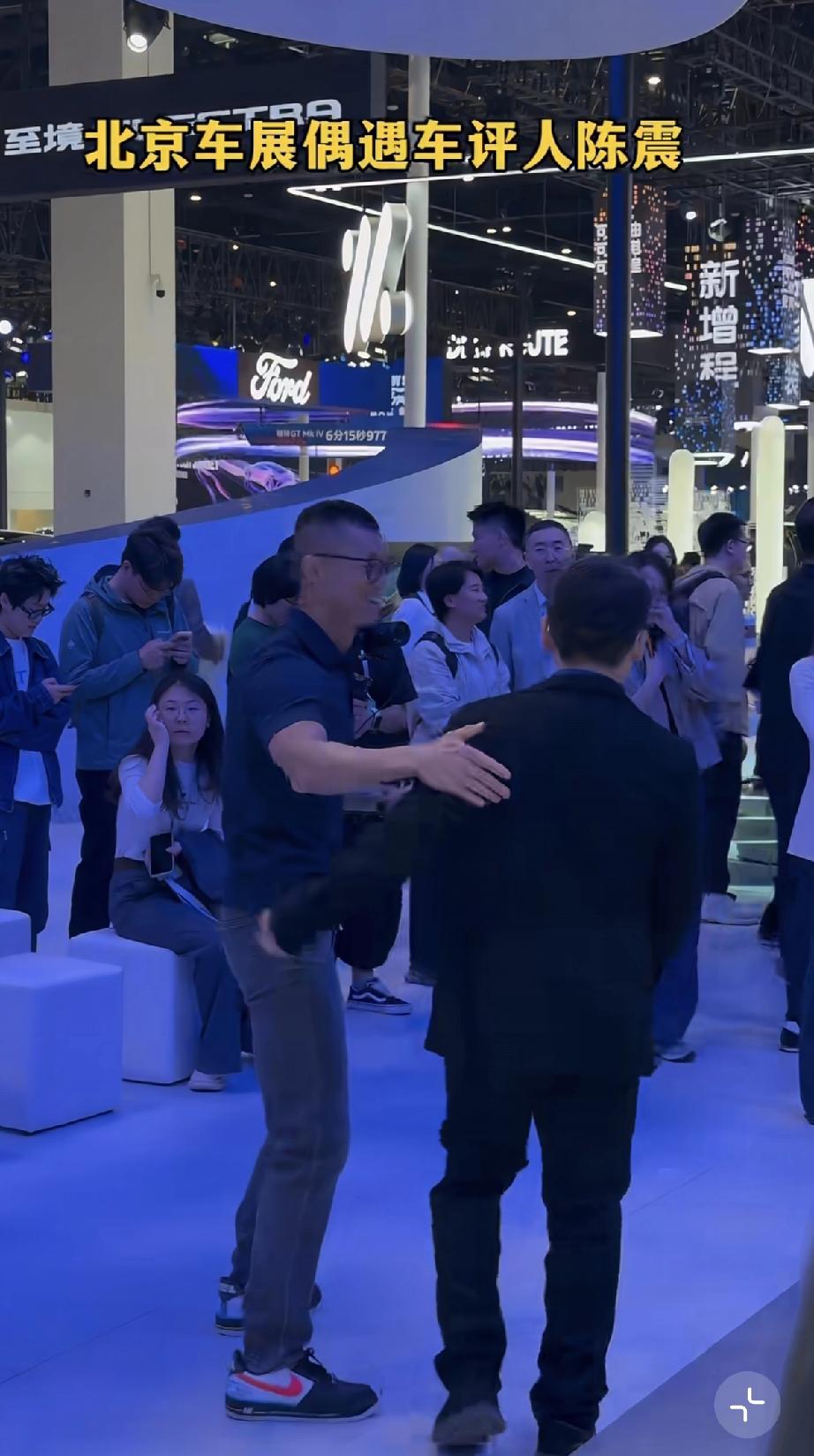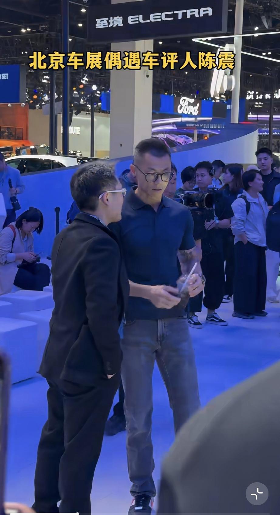 陈震好尴尬,独自逛北京车展本来无人问津,突然半路杀出个粉丝打招呼,惊讶得他瞪大眼睛然后硬着头皮笑了。 接着到了展区,又看到一位粉丝跟他聊天,他和粉丝一边说一边笑,笑得比较夸张了。 周围很多年轻人在看车,却没人注意陈震,有一个摄像机在拍摄汽车活动,从他们身边经过,也没有拍他。 看来陈震已经过气了,引不起消费者的注意了,他之前作为车评人是非常火爆的,流量很高。 而这次北京车展,他出现了以后场面挺尴尬的,以至于他本来以为自己过气了没人追捧,结果被粉丝打招呼还觉得挺惊讶的。 说明陈震已经提前知道了自己的结局,只是当成一名普通消费者进来看看,姿态放得很低了,终于回归平凡。