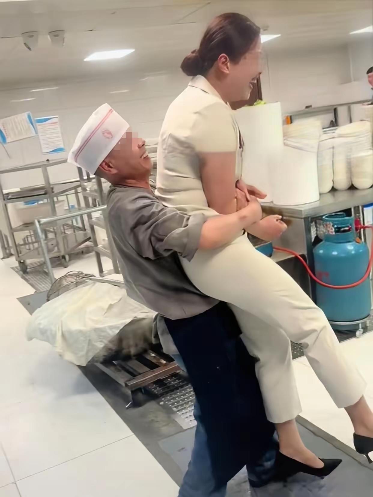 玩笑开过火,再暖心的氛围也变了味! 河北邯郸一家小饭庄,凭一段后厨视频意外爆火。 不是饭菜出圈,而是一段打闹画面,惹来全网热议不断。 视频里,身高1米74的老板娘,妆容精致气场十足。 穿着紧身白西装,站在厨房里,格外亮眼。 一旁四十多岁的厨师,个头刚过一米六,身材瘦小。 戴着厨师帽系着围裙,和老板娘站一起,反差感直接拉满。 原本好好的后厨干活,突然变成了打闹现场。 老板娘随口调侃厨师身材瘦小,语气带着玩笑意味。 这话瞬间激起厨师的好胜心,非要证明自己力气大。 二话不说,上前一把抱起老板娘,原地就开始转圈。 抱着人又甩又举,接连折腾了好几下,玩得不亦乐乎。 老板娘全程笑着,嘴上喊着让轻点,却也没拒绝。 没想到意外来得猝不及防,最后一下发力过猛。 厨师脚底打滑,两人直接重重摔在地上,场面十分尴尬。 爬起来后,两人还互相打趣,丝毫没觉得有不妥。 可这段视频传到网上,瞬间炸了锅,评论区吵翻了天。 有网友觉得,小店氛围太好,员工相处融洽太治愈。 日常打打闹闹,比冷冰冰的职场相处舒服太多。 可更多网友却看出了不妥,纷纷提出质疑。 职场相处再好,也该有边界感,玩笑不能没分寸。 尤其是男女之间,当众如此亲密打闹,实在不合时宜。 不管是老板员工,还是熟人朋友,都该守住相处的底线。 还有网友直言,看似欢乐的打闹,实则越界又失礼。 更何况老板娘已有家室,这般举动,难免让人议论纷纷。 更值得深思的是,拍下视频随意上传的人。 压根没考虑过,这段视频会带来怎样的负面影响。 职场相处,亲近不等于毫无顾忌,熟络不等于没有分寸。 异性之间相处,更要懂得保持距离,守住言行的底线。 玩笑没有边界,再好的关系也会生出嫌隙。 言行没有分寸,再和谐的氛围也会变得别扭。 无论是职场还是生活,与人相处,分寸感永远是必修课。 别把无礼当随性,别把越界当亲近,守住底线才是长久之道。 这段后厨打闹视频,你觉得是氛围好,还是太过火? 评论区说说你的真实想法!