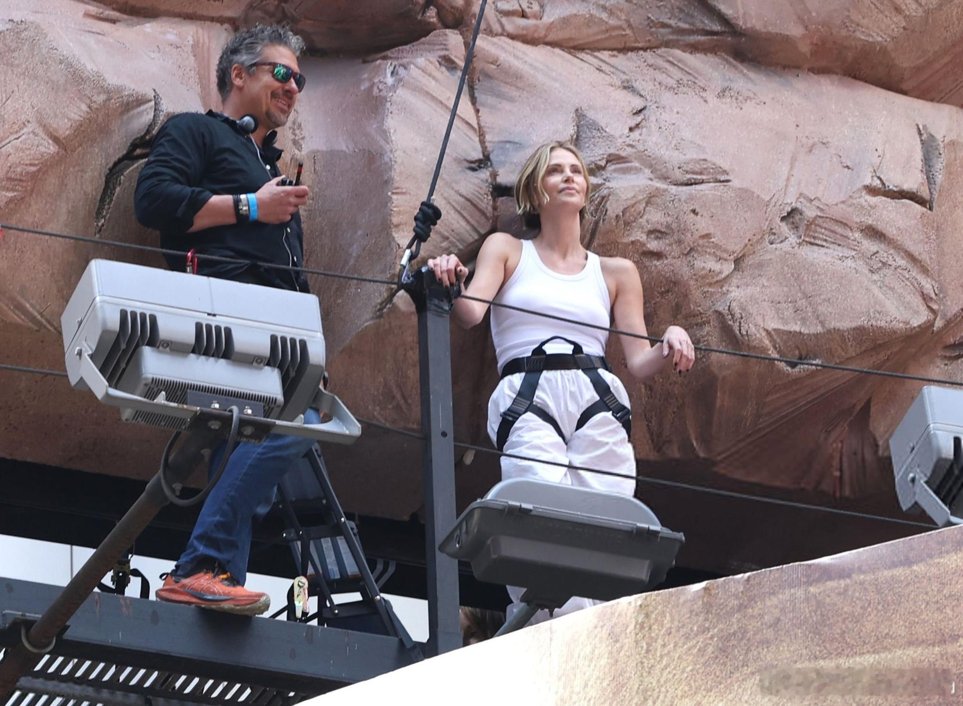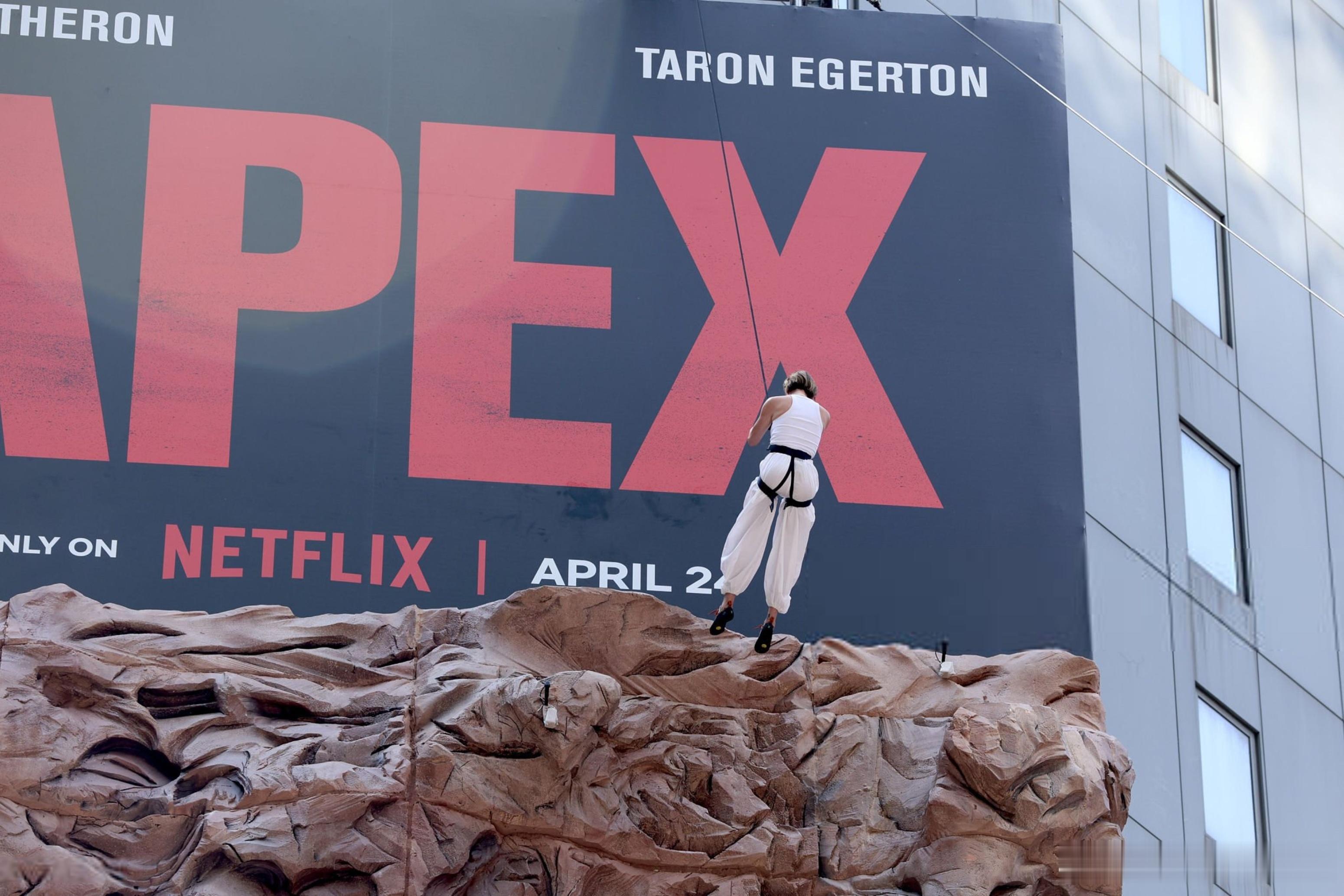 更多今天Charlize Theron查理兹塞隆今天在时代广场高空攀岩宣传新片《巅峰猎杀》,塞妈喊话让大家必须去看她的新片,不能让她的努力白白浪费