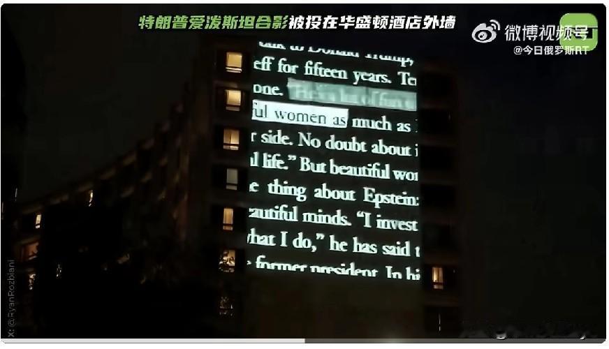在白宫记者协会晚宴前夕,美国总统特朗普与美国金融家、性犯罪者爱泼斯坦的相关文件和照片被投射在华盛顿希尔顿酒店外墙上,上面还写着“停止遮掩”等字样。 2026年白宫记者协会晚宴将于4月25日举行。这也将是美国总统特朗普自就任总统以来首次出席该活动。因与媒体关系紧张,他此前在任期内长期抵制该活动。 这是公众通过投影的形式,在特朗普出席晚宴的场地外,就其与爱泼斯坦的关联及案件透明度发起了一次精准的当面对质与问责。 时间和地点:2026年4月24日晚(晚宴前夕),华盛顿特区的华盛顿希尔顿酒店外墙(晚宴举办地)。 内容与手法:持续约2分钟的幻灯片,循环播放特朗普与爱泼斯坦的过往合照、经过大量涂黑处理的“爱泼斯坦档案”文件,以及写着 “停止遮掩” 字样。组织者通过匿名投影(近年已多次使用)将现场变成了一个临时的问责看板。 这场光影秀的多重含义 讽刺美国司法部一边声称公开,一边发布20小时内又神秘下架至少16份文件,引发公众对“双重正义”的质疑。 “停止遮掩”与“被消失”的联系,直指其利用总统权力压制不光彩报道和阻碍相关司法调查。在投影中特别使用大量涂黑(redacted) 的文件画面,视觉化传达了“政府正在‘遮掩’信息”的核心指控。 这次事件,展现美国政治极化下的舆论对决,一边是保守派支持者坚信特朗普在“对抗深层政府”,一边是自由派和媒体机构利用一切机会揭露真相,凸显了“后真相时代”两方阵营间的剧烈碰撞。政党恶斗,社会撕裂正在加剧。