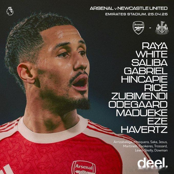 阿森纳vs纽卡斯尔 首发阵容⬇️ 00:30开赛!