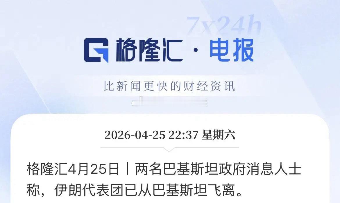 然后刚刚有媒体说,27日也就是下周一,美伊举行第二轮谈判,随后又有知情人士说,伊朗代表团已经离开巴基斯坦,然后又有媒体报道说伊朗外长将于周日重返巴基斯坦,你就说这消息反转的,快不快。