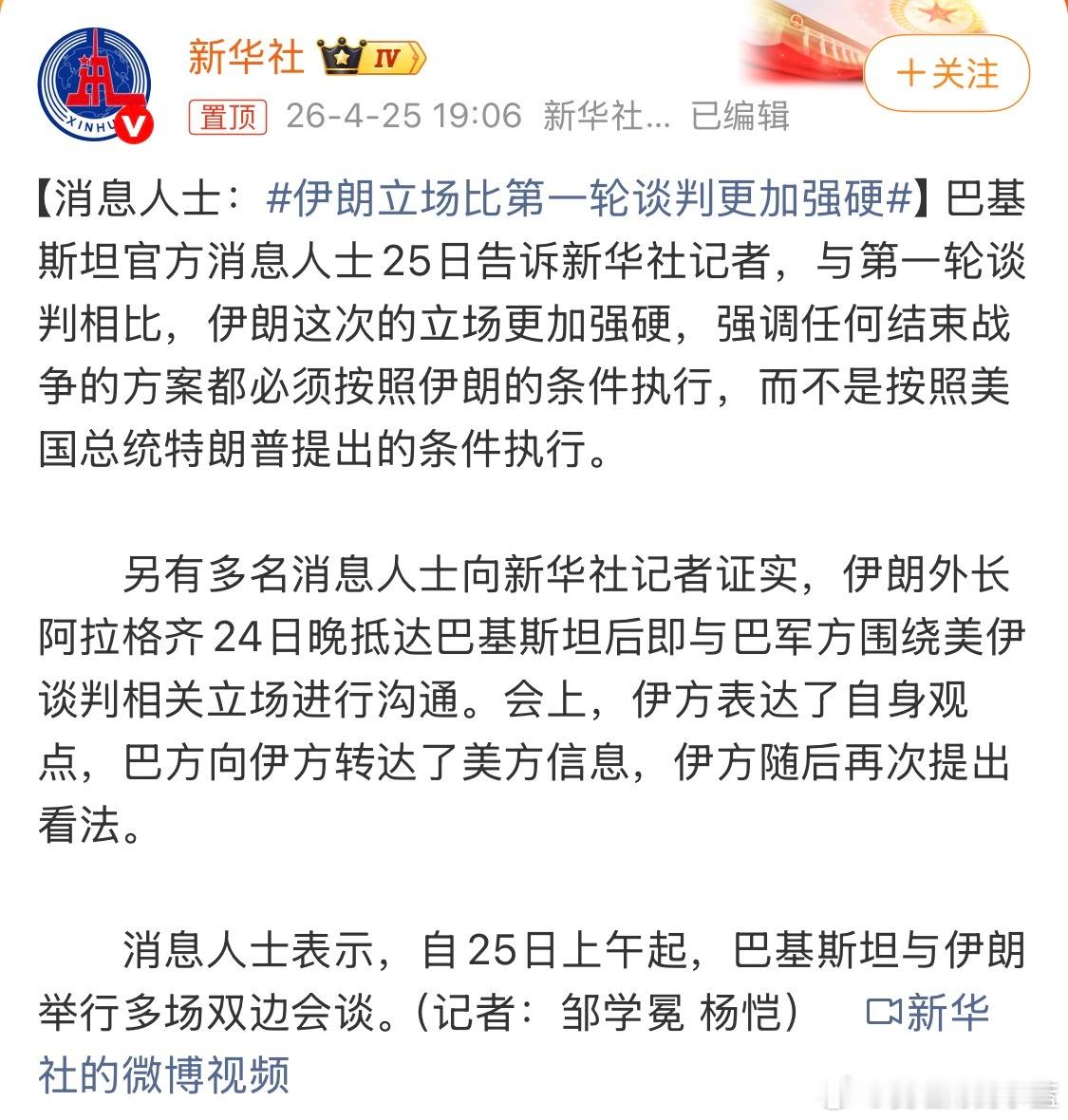 伊朗立场比第一轮谈判更加强硬与第一轮谈判相比,伊朗采取了更为强硬的立场,强调任何结束战争的方案都必须按照伊朗方面的条件执行,而不是按照美国总统特朗普提出的条件执行。