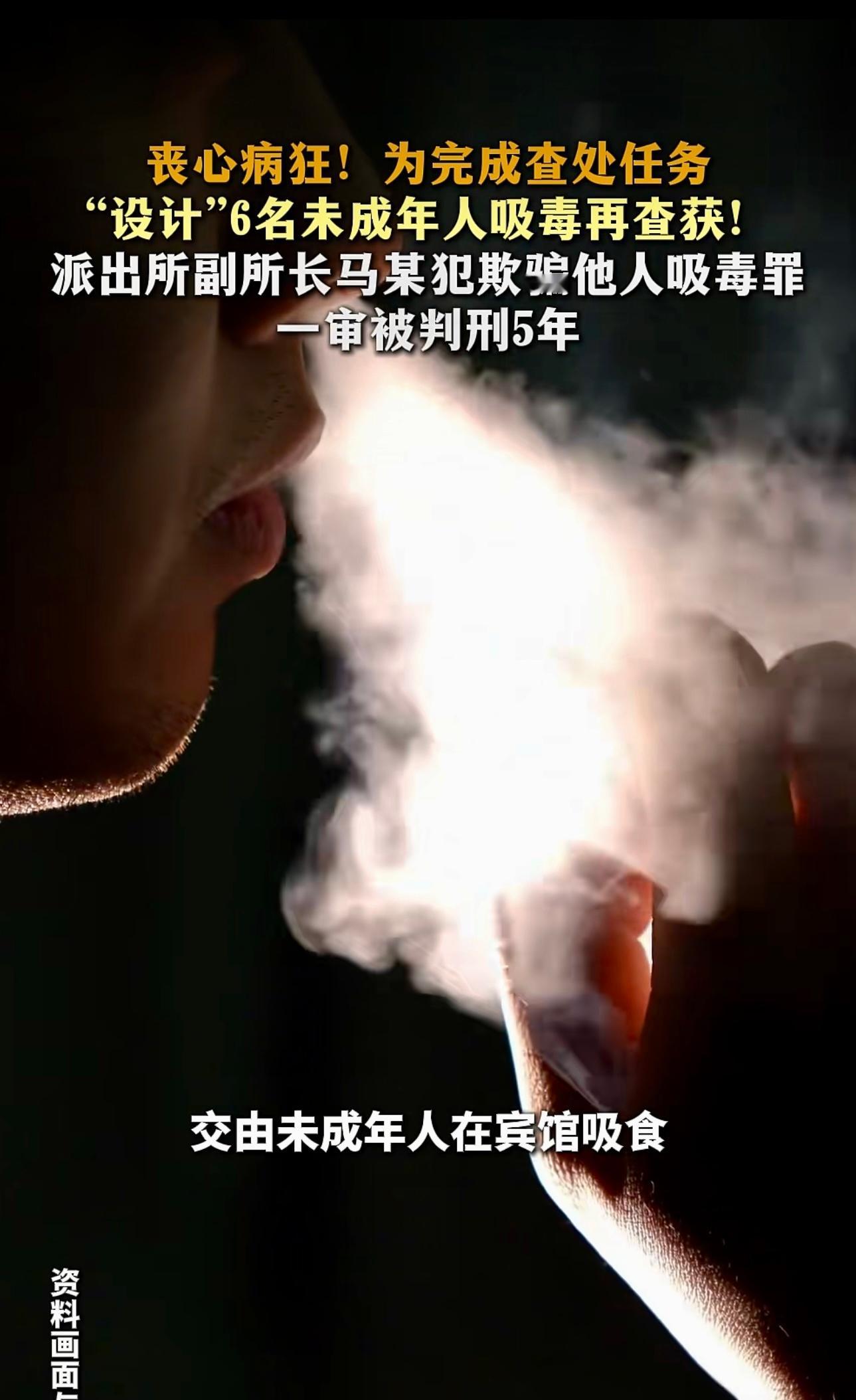 丧心病狂!为完成查处任务“设计”6名未成年人吸毒再查获!派出所副所长马某犯欺骗他人吸毒罪 一审被判刑5年。