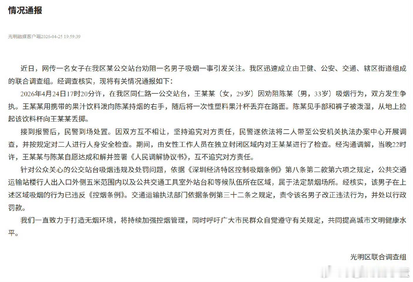 官方通报女子劝阻男子吸烟引争执你们怎么看?