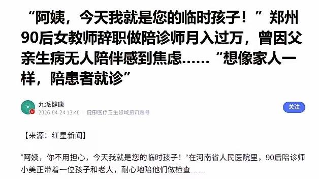 “又一个新兴职业突然爆火,普通人都能干”,4月24日,河南郑州,一位90后姑娘辞去幼儿园老师的工作,转行做了陪诊师,每天差不多接两到三名患者,一个月能挣一万多块,主要是陪着患者在医院里跑前跑后。 这位90后姑娘不是个例,陪诊师正在成为年轻人就业的新风口。 4月19日上海一场养老服务招聘会,一家企业直接放出500个陪诊师岗位,半小时收到近40份简历。另一场高校招聘会上,陪诊师月薪开到了1万+,企业摊前挤满了00后求职者。这阵仗以前只在互联网大厂招聘时见过。 可“月入过万”这四个字,水分不小。 以深圳为例,陪诊师每小时收费128元左右,超时按68元算。每天接两三单、每单两三小时,才能勉强摸到万元的边。更多刚入行的陪诊师,一星期只能接到几单,收入不稳定才是常态。老板的画饼技巧,在哪个行业都一样。 门槛低也是假象,陪诊师这碗饭,得有真本事。 南京的管婧做了一年多陪诊,包里常备充电宝、文件袋、塑料袋,车上还备着消毒湿巾和口罩。她从不给患者带食物和水——“万一过敏或者影响检查,就是纠纷”。盲人带路不能说“前面有椅子”,得说“往前走5米有椅子”。这些门道,光靠“热心”是搞不定的。 为什么陪诊师突然火了?因为需求实在太大。 上海普陀区2025年3月启动首批陪诊师培训,40学时课程,30人结业,立即上岗。老人不会用手机挂号、异地就医的病人摸不清流程、独居青年做胃肠镜没有家属签字——每一个场景背后,都是一个需要“临时家人”的人。 中国社会福利与养老服务协会的专家说,陪诊行业正迎来“黄金十年”。 这不是吹牛,是老龄化社会的刚需。政策也在跟进,上海已将“老年助医陪诊”纳入职业技能补贴目录。成都发了全国首批陪诊专项职业证书,上海也在搞专业化培训。陪诊已经从“野生职业”变成了“正规军”。 辞去幼师工作的郑州姑娘,算是踩在了风口上。 但她入职后发现,工作强度不比幼儿园轻松。每天北京、上海的大医院里,陪诊师的红马甲越来越常见。有人从早8点跑到晚6点,一天走两万步,连口水都顾不上喝。月入过万是用腿跑出来的,不是坐在办公室喝茶喝出来的。 更扎心的是,陪诊师干的是“情绪活”。 管婧遇到过癌症复查的阿姨,全程紧绷,问什么都不说。她没急,一边排队一边聊家常,说说菜价、聊聊天气。等到检查做完,阿姨拉着她的手说:“谢谢你啊闺女,我老伴走了以后,好久没人跟我说这么多话了。” 那些选择当陪诊师的年轻人,不是找不到工作才来的。 上海健康医学院护理专业毕业的00后小傅,放弃考研来应聘陪诊师。他说这个岗位“相对体面、收入不错”,而且“能帮到人”。带老人看病、帮患者跑腿、代取报告、整理医嘱,干的每一件事都是在帮人。 河南姑娘从幼师转行,陪的从孩子变成了老人。 岗位变了,陪伴的本质没变。以前教孩子认字画画,现在帮老人排队取药。以前怕孩子哭,现在怕老人急。以前的“耐心”用在了幼儿园,现在的“同理心”用在了医院。 她可能不知道,自己在做的这件事有个专业名字,叫“就医导航”。 帮患者挂号、缴费、取药、做检查,每一个环节都要跑得又快又准。还得安抚情绪、沟通医嘱、反馈病情,比家属还细心。上海普陀区的陪诊师培训里,这些都是必修课。没两把刷子,真干不了。 美国、日本早就有专业的“医疗陪护”职业,咱们这才刚起步。 起步阶段最缺的不是订单,是行业标准。现在陪诊师大多是“单打独斗”,服务靠口头约定。万一患者突发心梗,责任算谁的?万一患者隐瞒传染病,陪诊师安全谁来保?这些法律空白,迟早得填上。 扯远了,说回那位郑州姑娘。 她一个月挣一万多,在郑州算不错了。可这份工作不是终点,是起点。政策在推动、培训在跟上、需求在爆发。她踩中的不是“风口”,是社会转型期的一道光。 陪诊师火了,是因为这个社会越来越需要陪伴。 年轻人996没时间陪父母看病,老人独自去医院面对冰冷的自助机茫然无措,外地患者在大城市医院里迷路转圈。陪诊师不是“黄牛”,是“临时家人”。他们没有处方权,但能给患者一份安心。 河南姑娘的选择,其实是在告诉我们一件事。 职业没有高低贵贱,能帮到人的工作,就是好工作。从幼师到陪诊师,都是一样在付出、一样在陪伴、一样在让这个世界变得不那么冷。 麻烦看官老爷们右上角点击一下“关注”,既方便您进行讨论和分享,又能给您带来不一样的参与感,感谢您的支持!