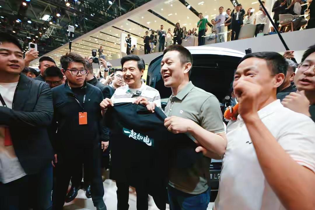 笑不活了!别家车展卖车,雷军不务正业:拆车、送衣、串遍友商展台。 2026北京车展,久未在大型活动现身的雷军玩出了新花样!别家车企忙着光鲜亮相、发布新车。 小米展台雷军全程“不务正业”,一边硬核拆车秀技术,一边化身“送礼达人”给友商大佬送定制T恤,跑遍全场串门人,把严肃车展变成了大型“串门交友现场”,网友直呼:“雷总这波操作,笑不活了!” 本届车展小米展台最炸的看点,不是新款车型,而是一台全拆解的SU7白车身。 别人藏着掖着核心技术,雷军偏要把车“大卸八块”,零遮挡露出整车骨架、CTB电池包、800V高压平台、蛟龙底盘和2200MPa超强钢防撞结构。 从焊缝、线束到压铸底板,每一处细节都赤裸裸展示,把“技术透明化”玩到极致。 毕竟此前他就直播3.5小时拆SU7,圈粉无数,这次直接把“拆车现场”搬到车展,用硬核实力打破质疑,这波“自曝家底”的操作,够硬核也够吸睛。 拆车秀只是开胃菜,雷军的“主业”仿佛变成了给友商送定制T恤,堪称车展“最强社交达人”。 他连跑理想、小鹏、蔚来、比亚迪四大展台,给李想、何小鹏、李斌、王传福各送一件专属T恤,每件印着量身定制的“金句”,梗味拉满。 给理想李想的是“听我讲完”,对应他过往经典名场面;给小鹏何小鹏的是“都是好鹏友”,谐音梗呼应多年私交; 给蔚来李斌的是“一起加电”,贴合充换电生态;给比亚迪王传福的是“在一起才是中国汽车”,戳中产业协同共识。 四件T恤连起来,恰好是一句完整口号:“听我讲完:都是好鹏友,一起加电!在一起,才是中国汽车”。 送完T恤还不够,雷军全程化身“串门人”,逛遍各大友商展台,和车企大佬们谈笑风生、合影互动,氛围轻松又和谐。 没有同行竞争的剑拔弩张,只有“中国汽车一家人”的默契,把“竞对关系”玩成了“好友联动”,格局瞬间拉满。网友调侃:“别人来车展卖车,雷军来车展交朋友、搞团建,顺带卖个车!” 其实看似“不务正业”,实则是雷军的高明玩法。拆车是用硬核技术立住小米汽车的品质口碑,让用户看到“看不见的实力”; 送衣串门是用松弛的社交方式打破行业对立,传递“中国车企抱团出海、一起做强”的理念。 毕竟如今新能源赛道,内卷不如共赢,雷军这波操作,既赚足了流量,又赢了口碑,还拉近了和友商的距离,一举三得。 不得不说,本届北京车展,雷军凭一己之力带火全场话题。没有花哨的营销套路,却用拆车的坦诚、送礼的真诚、串门的随和,让小米汽车出圈,也让大家看到中国车企不一样的相处模式。这样“不务正业”的雷军,你爱了吗?