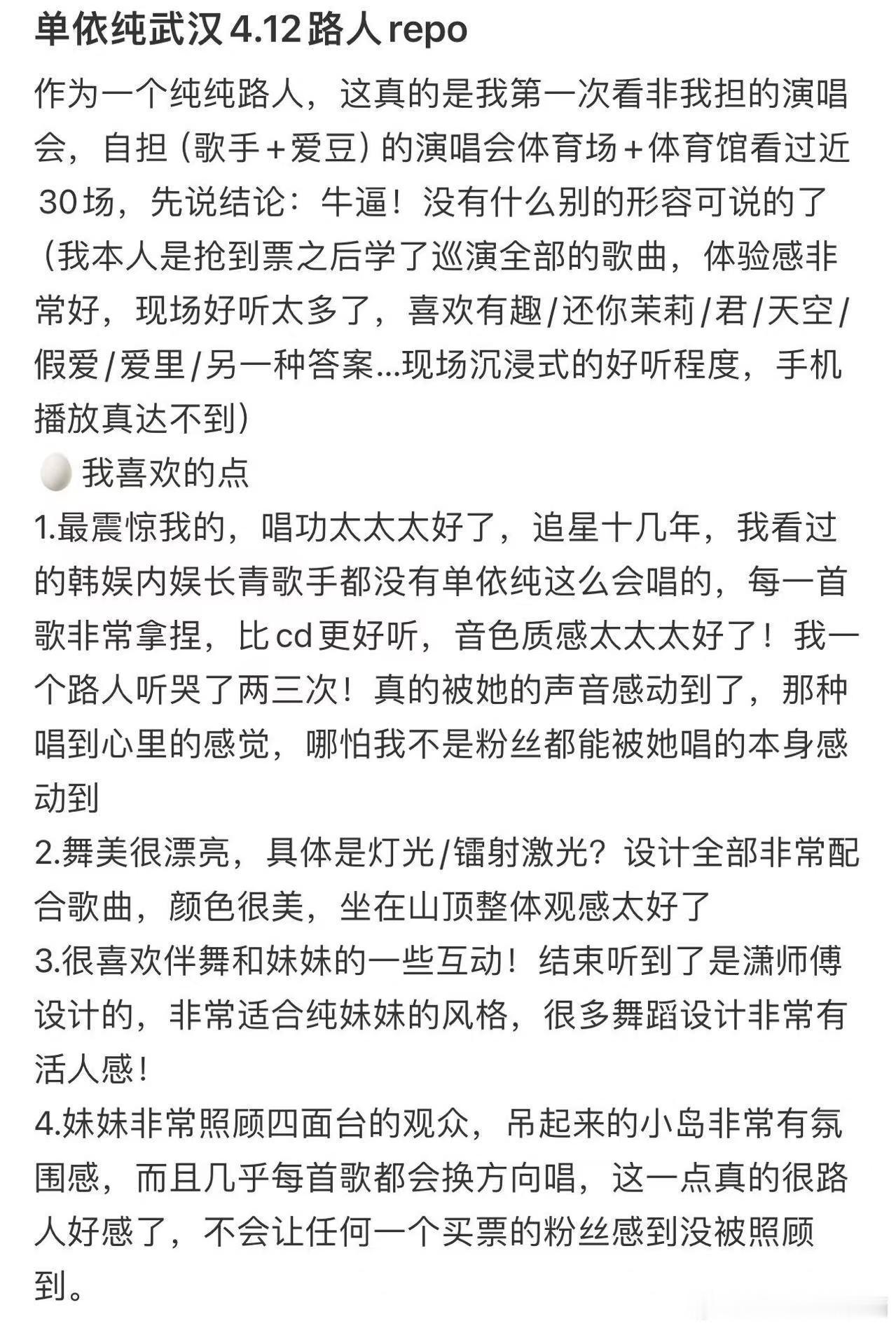 单依纯演唱路人口碑 她的现场被人评价为“看过20-30场演唱会里舞台效果最好的”。场地小但视觉近,票价也很合适,进去的人都说值。因为那个声音离你很近,近到像在耳边唱。