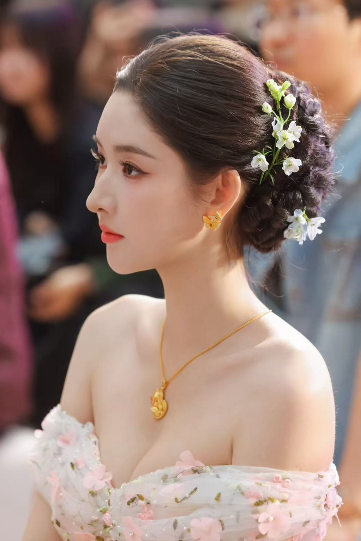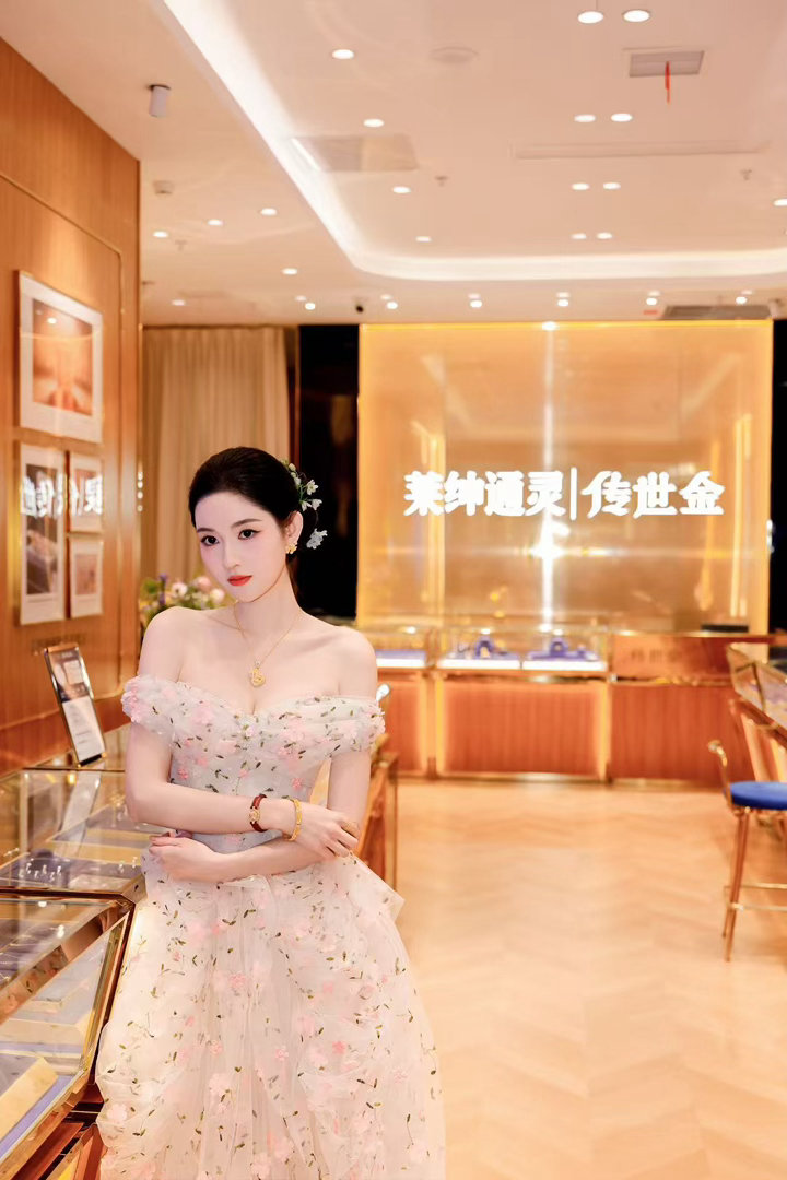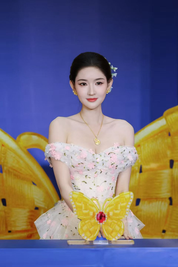 王玉雯一字肩花朵长裙王玉雯苏州活动状态 她的状态比裙子还加分。眉眼舒展、笑容自然,没有硬凹的精致感,就是那种“我今天很好看”的从容。苏州的春风大概都多看了她几眼。