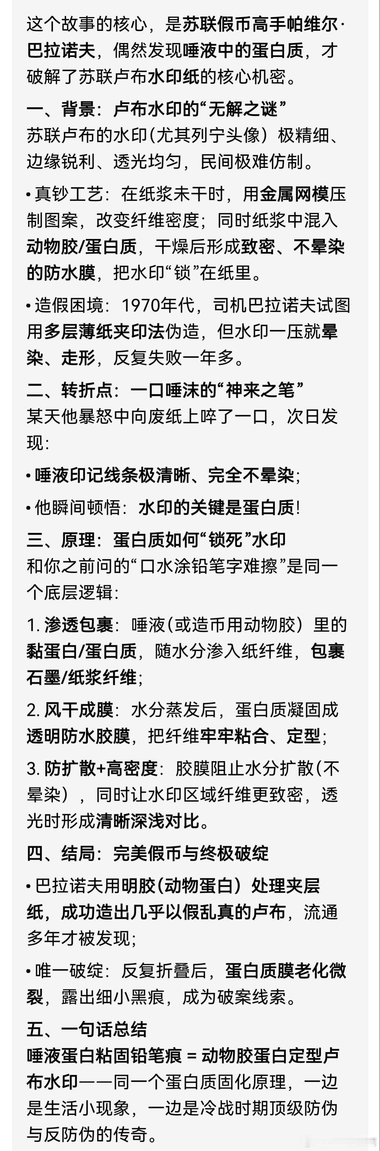 于是,拿过我手机开始四处查询。最后AI帮忙解答了,还顺便科普了一个蛋白质锁死水印的故事。