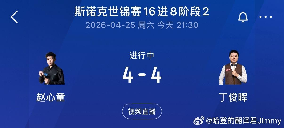 精彩! 丁俊晖vs赵心童 第一阶段打成4-4!