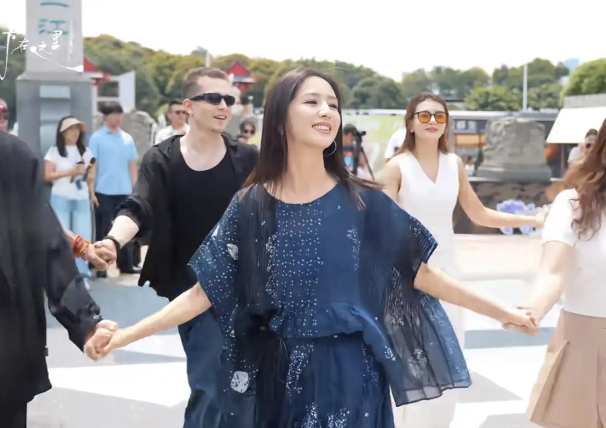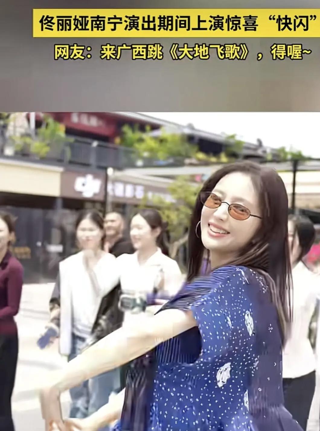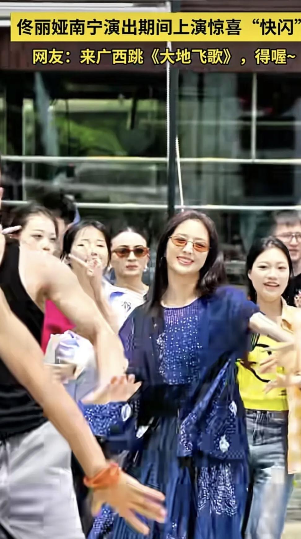 43岁的佟丽娅带着舞蹈诗剧《在远方·在这里》来南宁了。 她在演出间隙化身“街头舞者”,以广西经典民歌《大地飞歌》为旋律,带来一场灵动热烈的快闪表演,瞬间点燃绿城南宁的热情。 佟丽娅一袭蓝色印花长裙,搭配橘色墨镜,清新又明艳。随着《大地飞歌》的熟悉旋律响起,她翩然起舞,手腕翻转如柳枝轻摇,足尖轻旋似踏风而行,将壮族民歌的浓郁风情与自身专业的民族舞风完美融合。灵动的舞步、灿烂的笑容,瞬间吸引周围市民驻足围观,不少人拿出手机记录下这一美好瞬间,现场响起阵阵欢呼与掌声。 之后,佟丽娅还在社交平台发文打卡了南宁热门景点。在青秀山北门,她背着印着“我在青秀山显眼包”的绿色布袋,手持粉色花朵道具,笑容甜美,与标志性的民族建筑同框,画面鲜活又接地气;随后她还现身东盟盛天地,解锁港风打卡点,将绿城的山水风光与都市风情收入镜头。