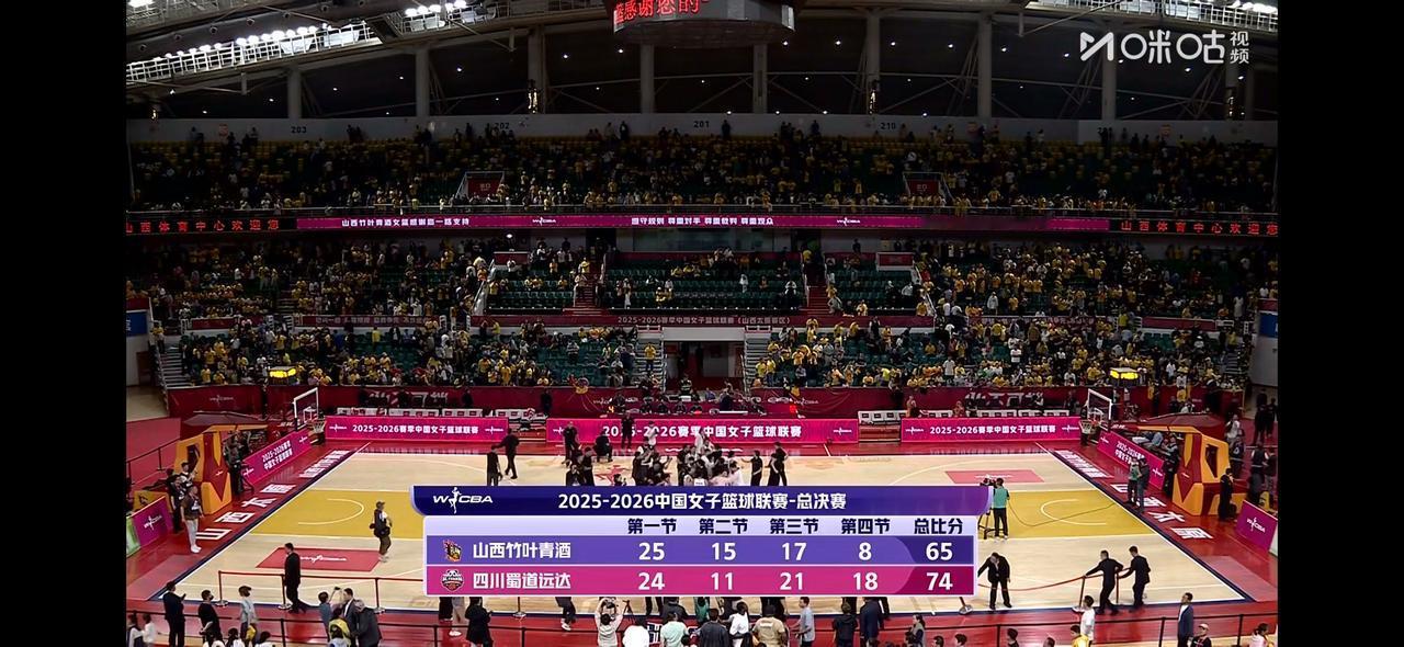 冠军拿到手了!没有想到最终单外援的四川蜀道远达女篮赢得比赛! 在刚刚进行的WCBA冠军争夺战的比赛中,主场作战的山西竹叶青酒女篮对阵四川蜀道远达女篮,最终客场挑战的四川女篮以74比65取得了胜利✌️! 纵观全场比赛中,可以看到,山西女篮布朗篮板球保护不错,但是得分能力不高,霍斯叮表现出色,宋可欣也有上佳表现,但是第四节比赛打得太差了,才得到了8分。反观四川女篮,李缘、霍华德、高颂表现出色,霍华德得分能力强,替补登场的王思雨、唐子婷也有上佳表现,尤其是比赛最后时刻王思雨 、李缘非常精彩表现,特别是王思雨的抢断、罚球,李缘的三分。 恭喜四川蜀道远达女篮取得胜利✌️!并且获得WCBA联赛冠军!