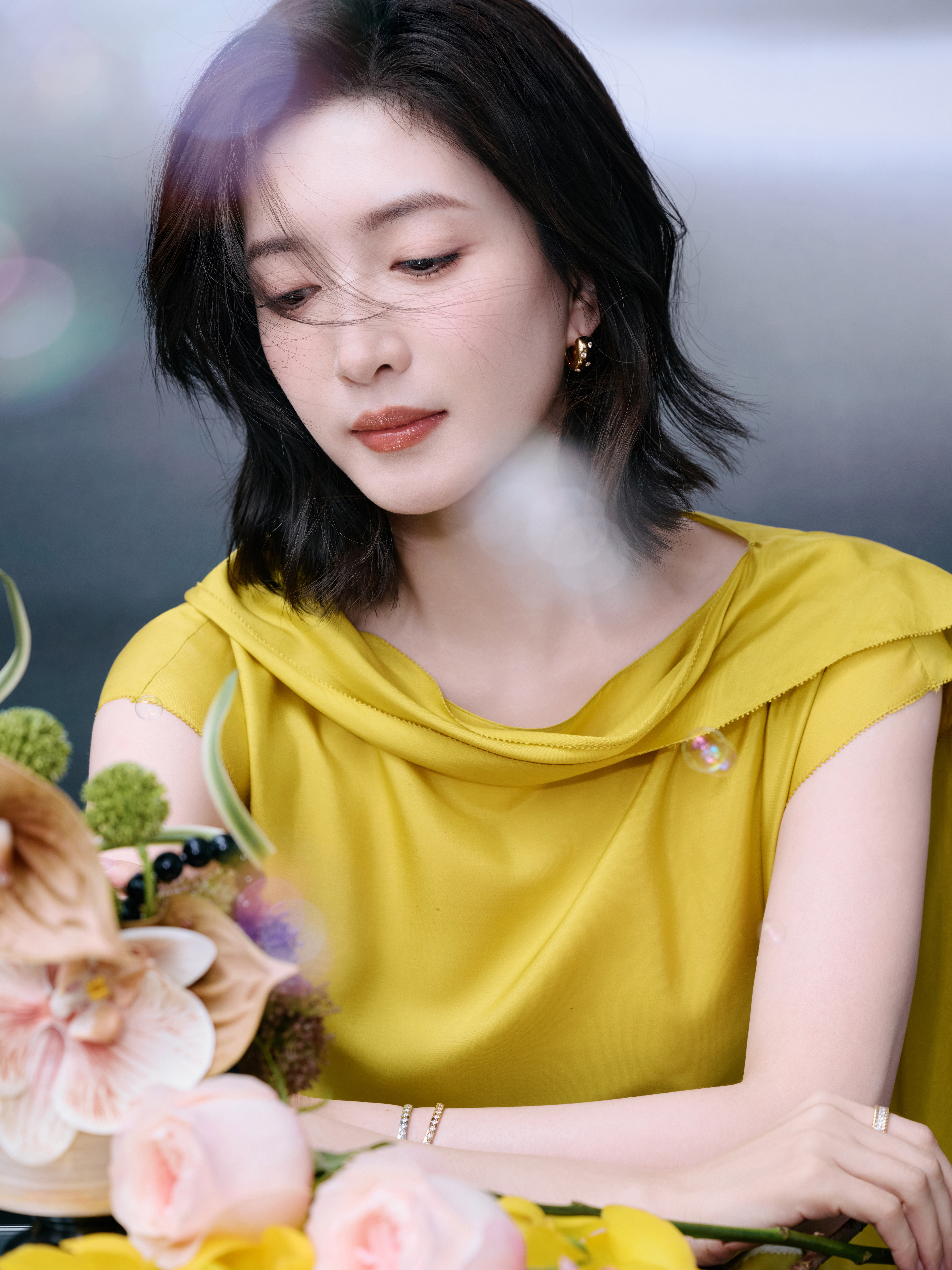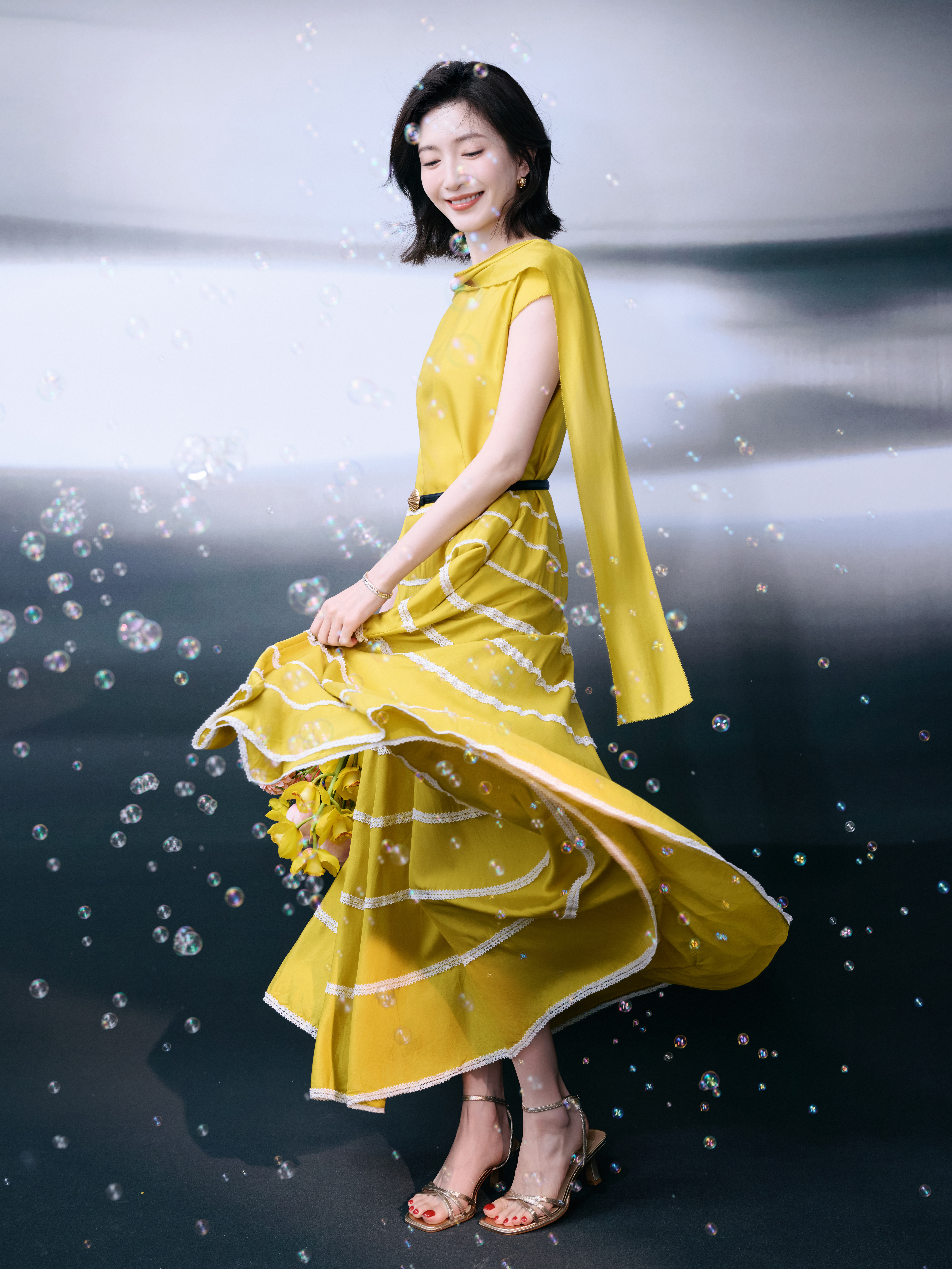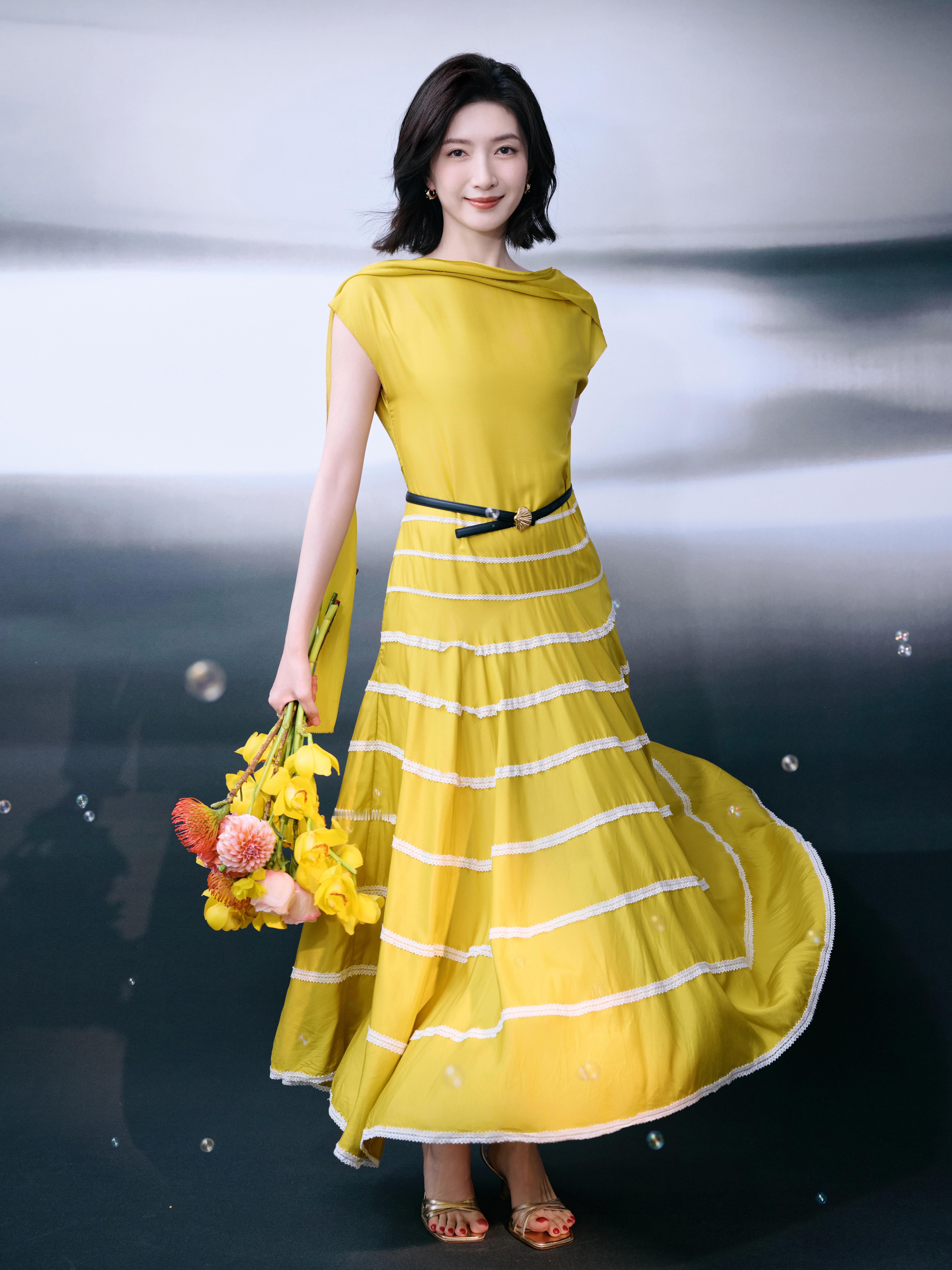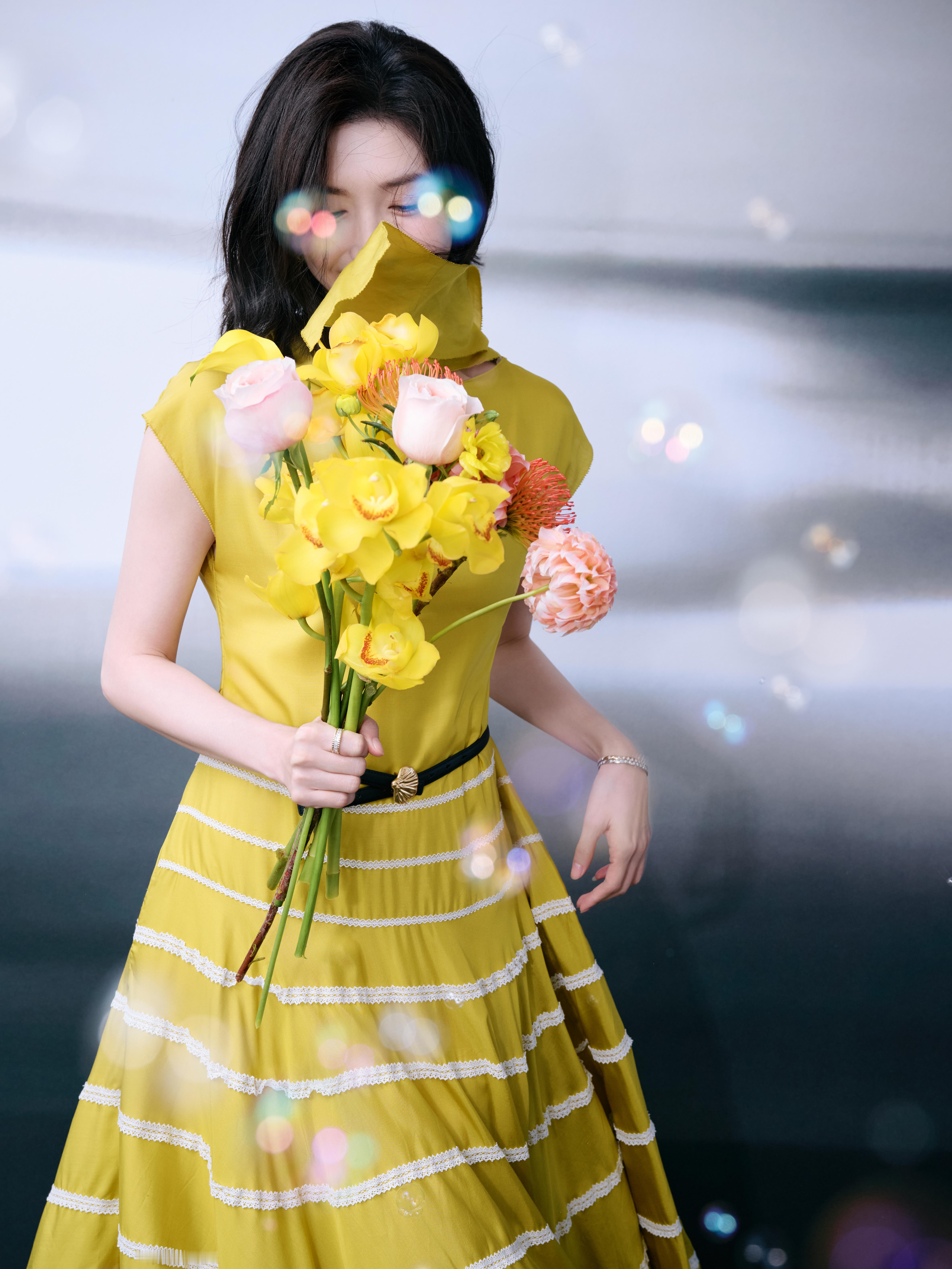 👠吴宣仪金色彩带雨中的吴宣仪