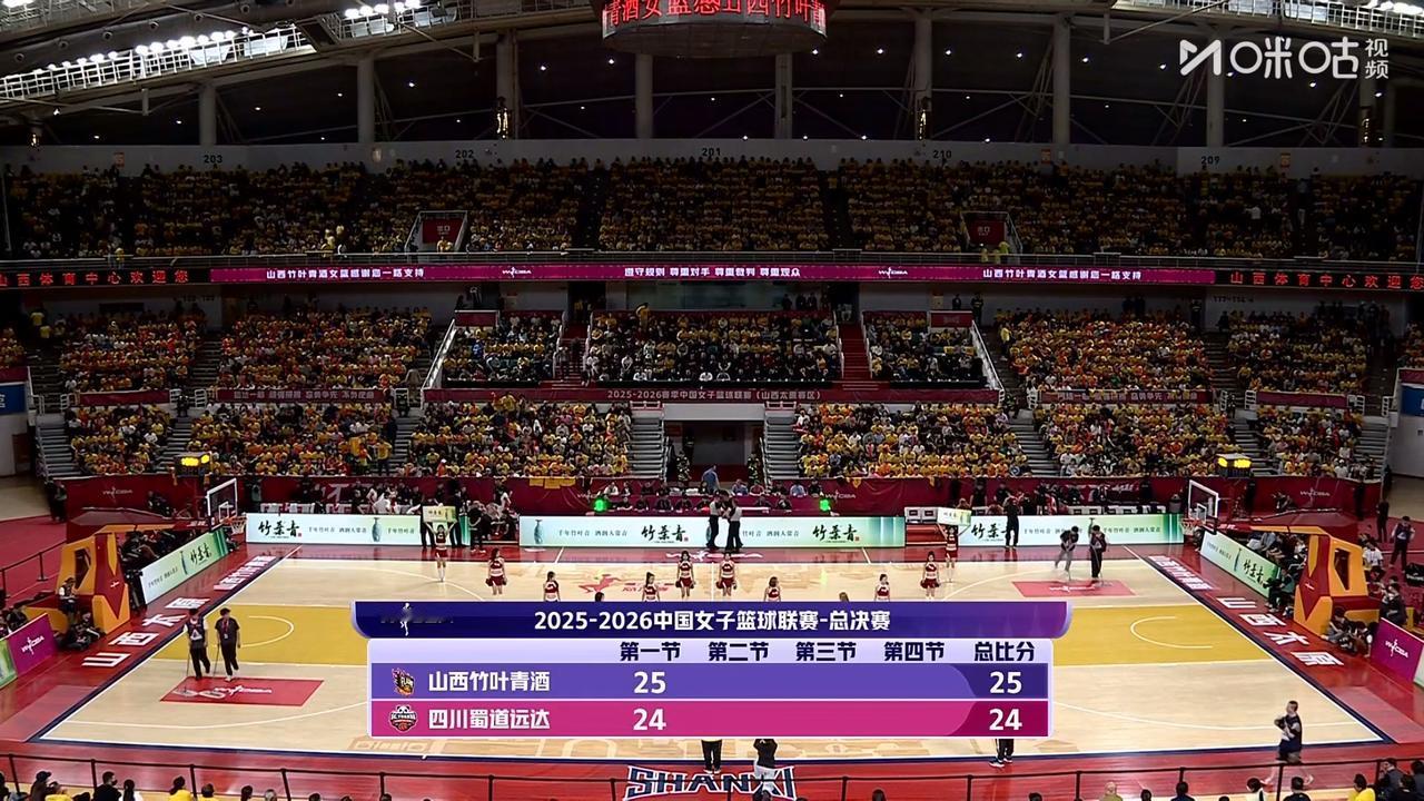 冠军争夺战开打了!比赛非常精彩! 在刚刚进行的WCBA冠军争夺战的第五场比赛第一节比赛中,主场作战的山西竹叶青酒女篮对阵四川蜀道远达女篮,山西队暂时以25比24领先! 从第一节比赛中可以看到,山西女篮开局打得不错,但是犯规多了,罚球命中率不高。宋可欣、霍斯盯表现不错,布朗表现不佳。反观四川女篮李缘、霍华德、高颂表现出色。 这场比赛非常精彩,我看好主场迎战的山西竹叶青酒女篮最终取得胜利✌️!获得WCBA冠军!