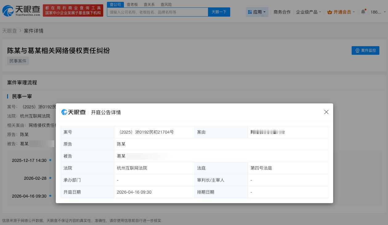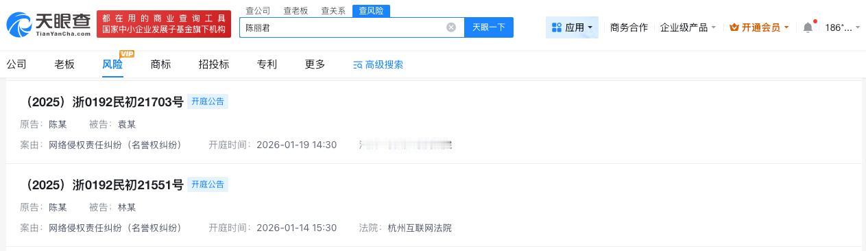 陈丽君维权案件胜诉 陈丽君近期多次维权陈丽君晋升副主任 据报道,近日,青年演员陈丽君已担任浙江小百花越剧院艺术生产与创作部副主任。 天眼查法律诉讼信息显示,此前,陈丽君已多次发起网络侵权责任纠纷、名誉权纠纷诉讼,被告涉及多个自然人。其中,陈丽君与林某、袁某、葛某等相关网络侵权责任纠纷、名誉权纠纷案件分别于1月14日、1月19日、4月16日开庭;3月5日,杭州互联网法院刊登原告陈丽君与被告何某名誉权、肖像权、隐私权纠纷一案民事判决书,法院判决何某向原告陈丽君公开书面赔礼道歉,赔偿维权合理支出、精神损害抚慰金合计3万元。 天眼查信息:陈丽君