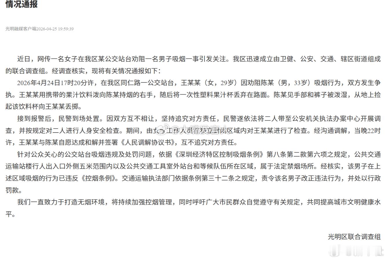 官方通报女子劝阻男子吸烟引争执 这起冲突,摆脱性别,本质就是,路人能否对违规者进行“执法式”劝阻?(图2)你能占据道德高地后,主动动手吗?在公共场所吸烟,确实违规,有危害他人健康之嫌,你能拿饮料给对方身上洒、把烟浇灭吗?小区里有人遛狗不牵绳,电梯里有人带狗外出不束笼,都吓到你了,你怕被狗咬,不敢行进、不敢坐电梯,你能朝狗主人脸五吐口水吗?街道上有人乱丢果皮、垃圾,有把他人滑倒的风险,你能拿起果皮抹到乱丢者脸上吗?