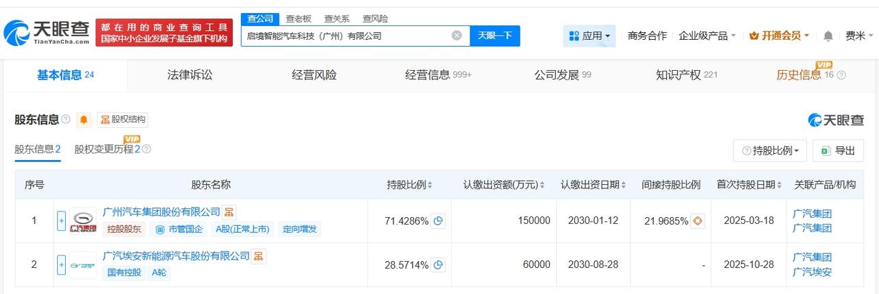 启境汽车今年已申请GT7商标 启境汽车已申请GT8和GT9商标华为全新一代技术上车启境GT7 据媒体报道,今日,启境GT7亮相2026北京车展,据悉,其将搭载全新一代HUAWEIXPIXEL双百万像素彩色智慧投影大灯,预计6月将正式上市。 天眼查知识产权信息显示,今年2月,启境汽车关联公司启境智能汽车科技(广州)有限公司已申请注册多枚“GT7”“GT8”“GT9”商标,国际分类包括科学仪器、广告销售等,目前商标状态均为等待实质审查。 该公司成立于2025年3月,法定代表人为閤先庆,注册资本21亿人民币,经营范围包括汽车销售、汽车零部件及配件制造、汽车零配件批发等,由广州汽车集团股份有限公司、广汽埃安新能源汽车股份有限公司共同持股。 天眼查信息: