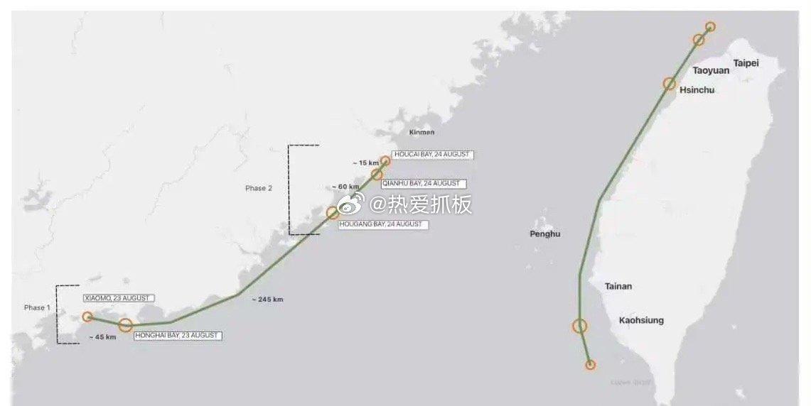 演习场地高度复刻台湾西海岸地理特征,选址于台湾对岸的漳厦泉沿海地带,各演习点位间距与台湾西海岸战时潜在登陆滩头间距高度匹配,最远点位跨度约 360 公里,大致相当于台北至高雄的南北距离。